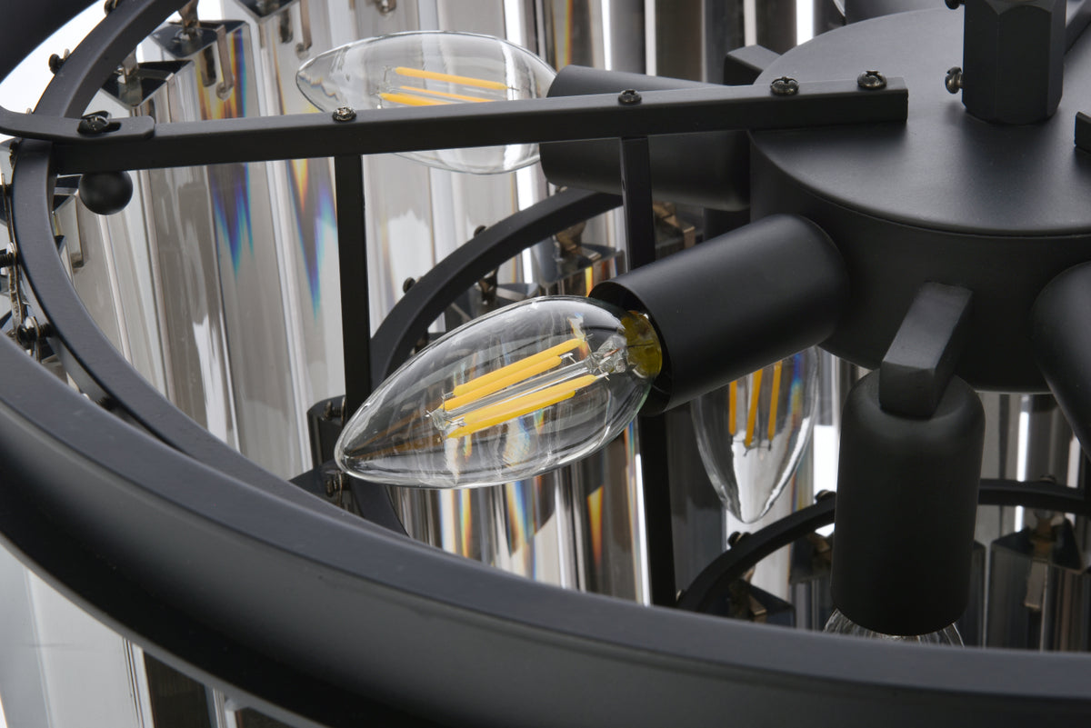 Sydney 9 light Matte Black Chandelier Silver Shade (Grey) Royal Cut Crystal