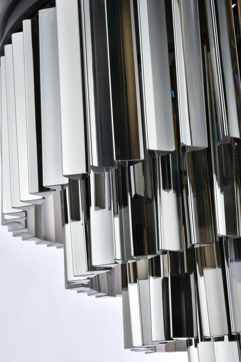 Timeless splendor and modern refinement are brought together in flush-mount Sydney fixtures. Dazzling in dining rooms, staircases, or hallways, the Sydney collection flaunts stunning tiers of royal-cut crystals in clear, golden teak, or Silver shade. A circular Matte Black or polished-nickel finished steel frame adds understated charm to this stunning flush-mount lamp.