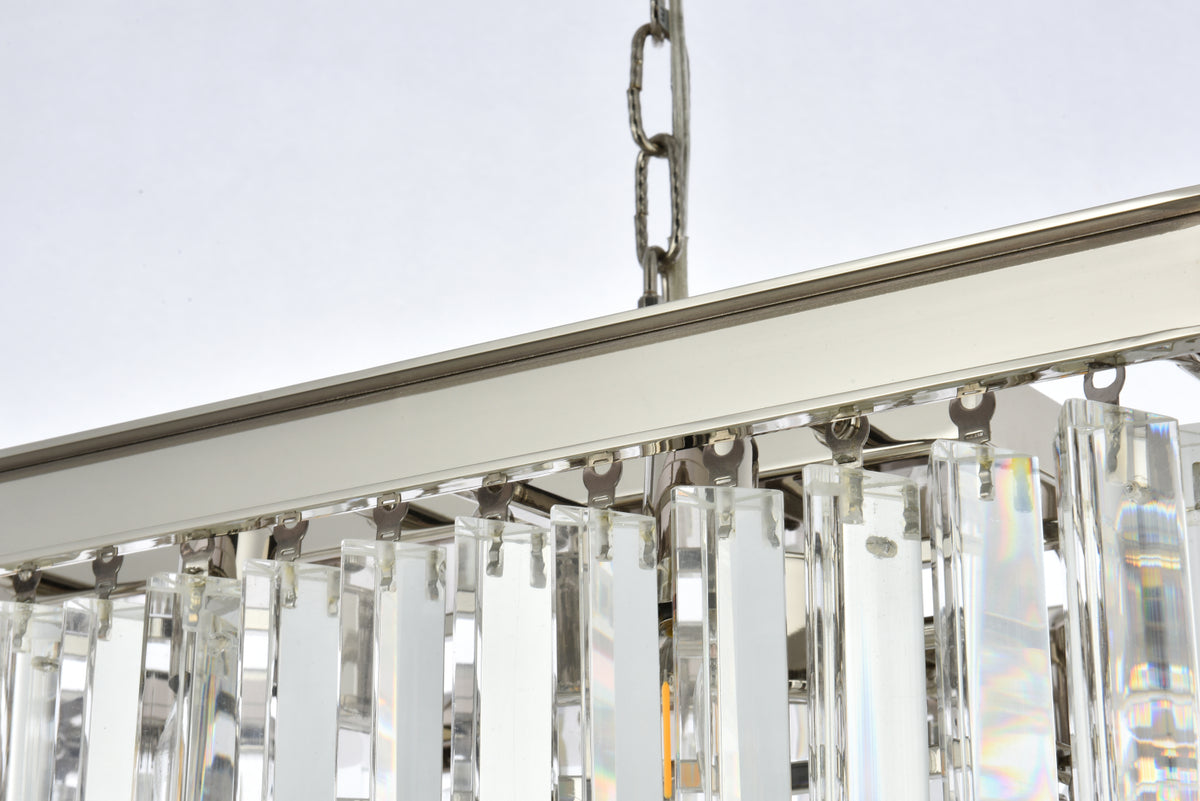 Bring the splendor of the ballroom into your home with a sparkling Sydney fixture. Stunning in foyers, dining rooms, or stairwells, the Sydney collection brings to mind the glamour of the Roaring Twenties. Features glimmering tiers of royal-cut clear, golden-teak, or Silver-shade crystals. In mocha-brown or polished-nickel finishes, this sturdy, yet delicate, pendant lamp will be the perfect centerpiece for any décor.