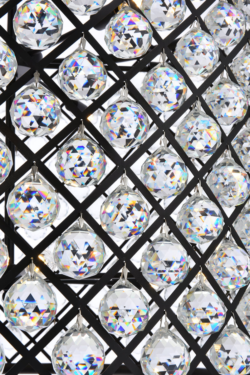 Modern simplicity meets organic beauty in the breathtakingly unique Madison collection. Hand-polished, multifaceted clear, golden-teak, or Silver-shade crystal spheres shimmer like dewdrops in a circular forged-iron grid with a golden-iron, Matte Black, or polished-nickel finish. These airy pendant lamps will brighten up a kitchen, dining room, foyer, or stairwell in an explosion of reflected light.
