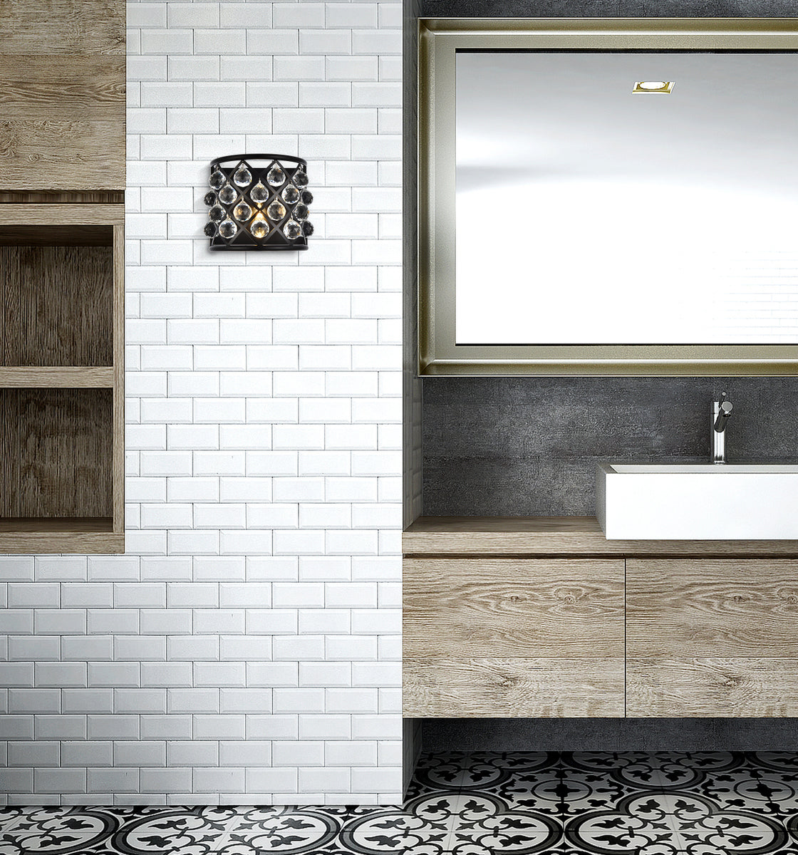 Madison 1 light Matte Black Wall Sconce Clear Royal Cut Crystal