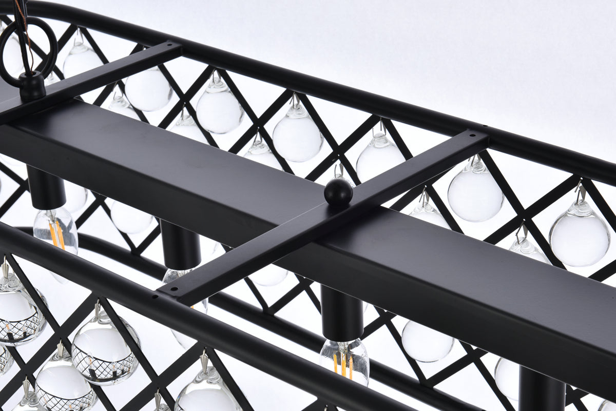 Modern simplicity meets organic beauty in the breathtakingly unique Madison collection. Hand-polished, multifaceted clear crystal spheres shimmer like dewdrops in an oblong forged-iron grid with a golden-iron, Matte Black, or polished-nickel finish. These airy chandeliers will brighten up a kitchen, dining room, foyer, or stairwell in an explosion of reflected light.