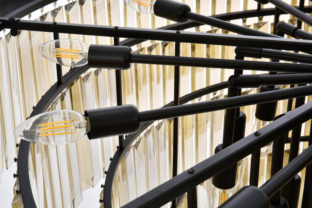 Sydney 33 light Matte Black Chandelier Golden Teak (Smoky) Royal Cut Crystal