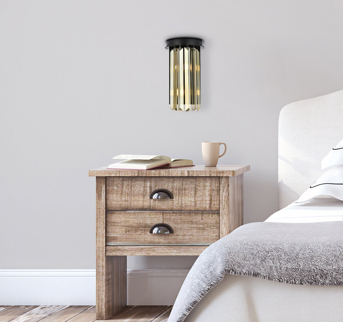 Classical charm meets modern elegance with the Sydney wall light collection. Stunning in dining rooms, hallways, or living rooms, the Sydney collection shines with a fringe of sparkling, royal-cut clear, golden teak, or Silver shade crystals. With a steel backplate in a Matte Black or polished-nickel finish, this delicate wall sconce will add glamour to every nook and cranny.