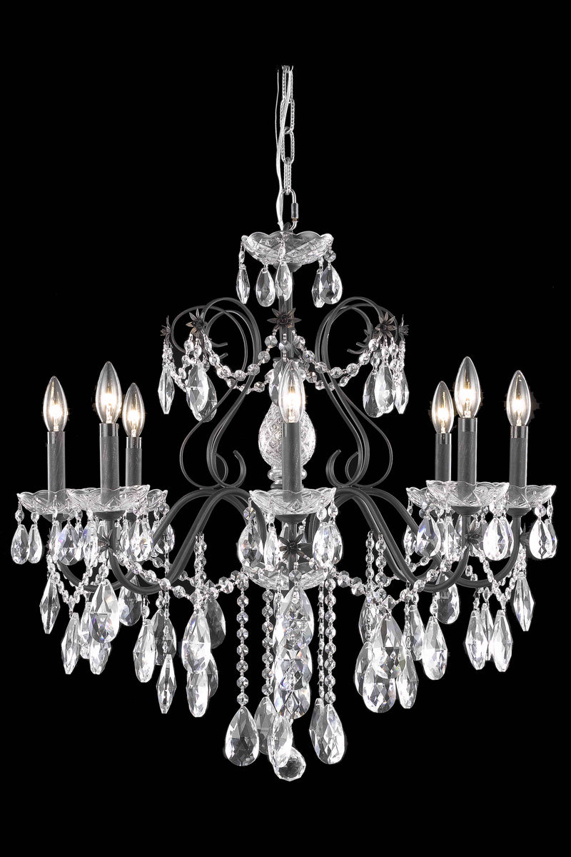 Inspired by centuries of artisans who crafted magnificent chandeliers for castles and palaces, the St. Francis collection offers updated fixtures that will enhance the elegance of any room where they’re hung. The intricate steel frames are adorned with graceful sweeping arms holding candelabra-style bulbs on delicate crystal bobèches, all accented with a glorious shower of crystal drops, festoons, and beads. Available in beautiful chrome, dark-bronze, or gold finishes and a choice of crystal trims, in a range of diameters from 24 to 36 inches. A wide, cylindrical shade is also included on certain models.