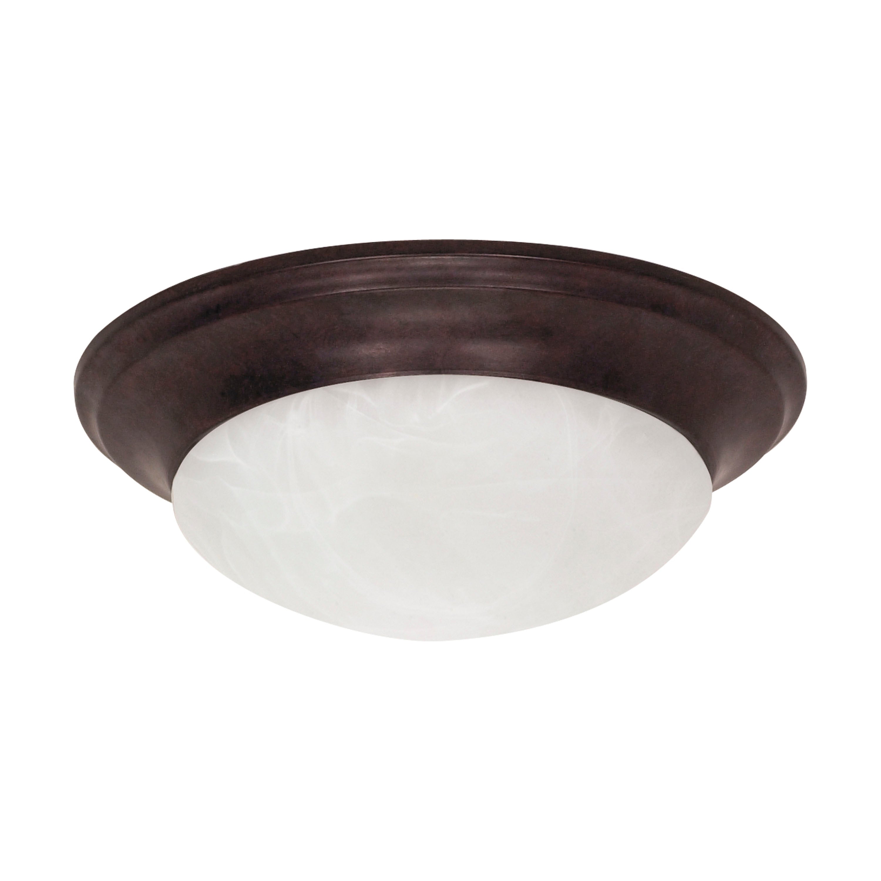 Satco's 1-light, 12 inch flush mount fixture features an old bronze finish, accented with alabaster glass. Illuminate living rooms, dining rooms, kitchens, and foyers with this elegant, twist and lock fixture. Sleek and contemporary, this 1-light flush mount adds style to any home.
