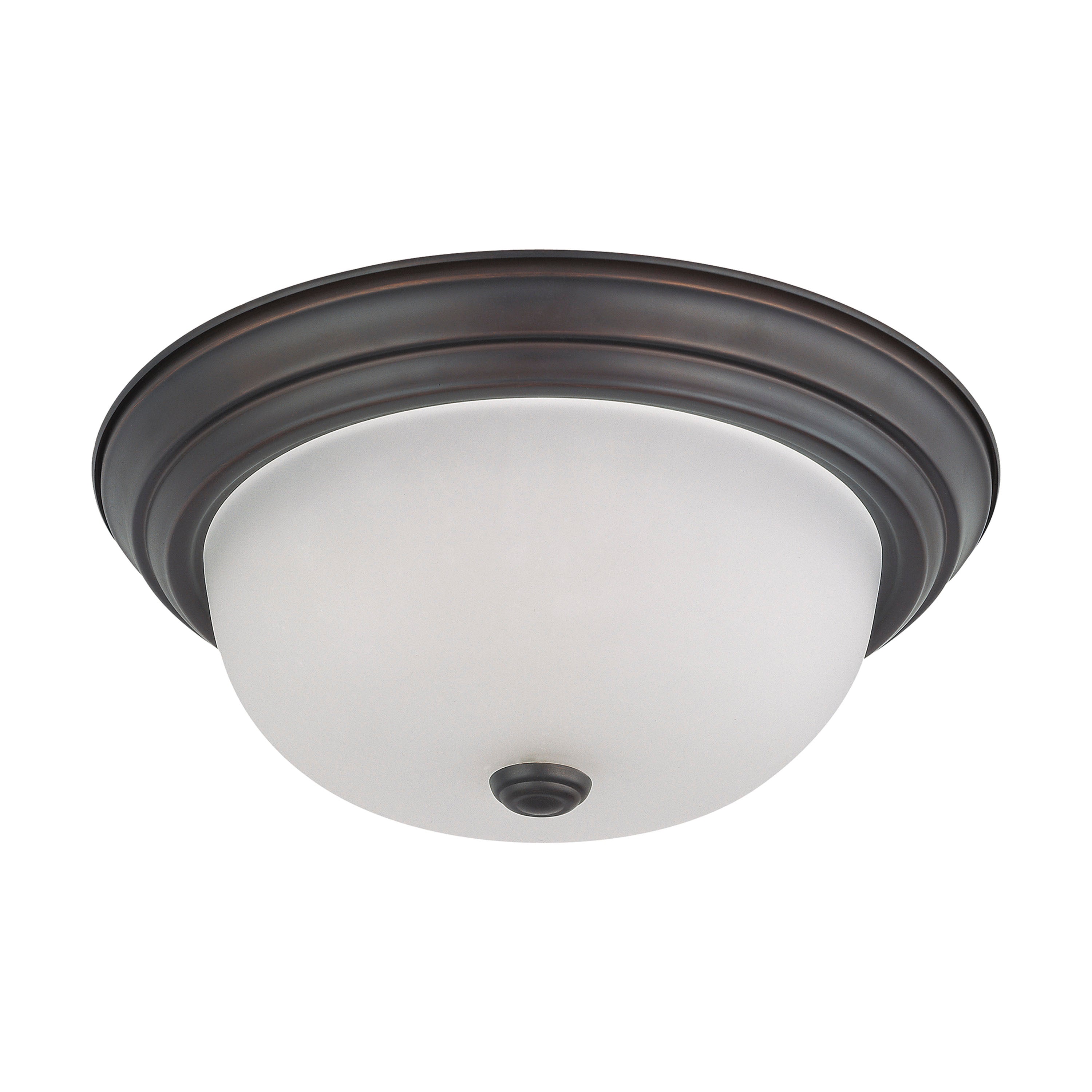 Satco's 2 light, 13 inch flush mount fixture features a deep rich mahogany bronze finish, accented by frosted white glass. Illuminate living rooms, dining rooms, and foyers with this elegant flush mount. Traditional, yet contemporary, this 2 light flush mount adds style to the home.