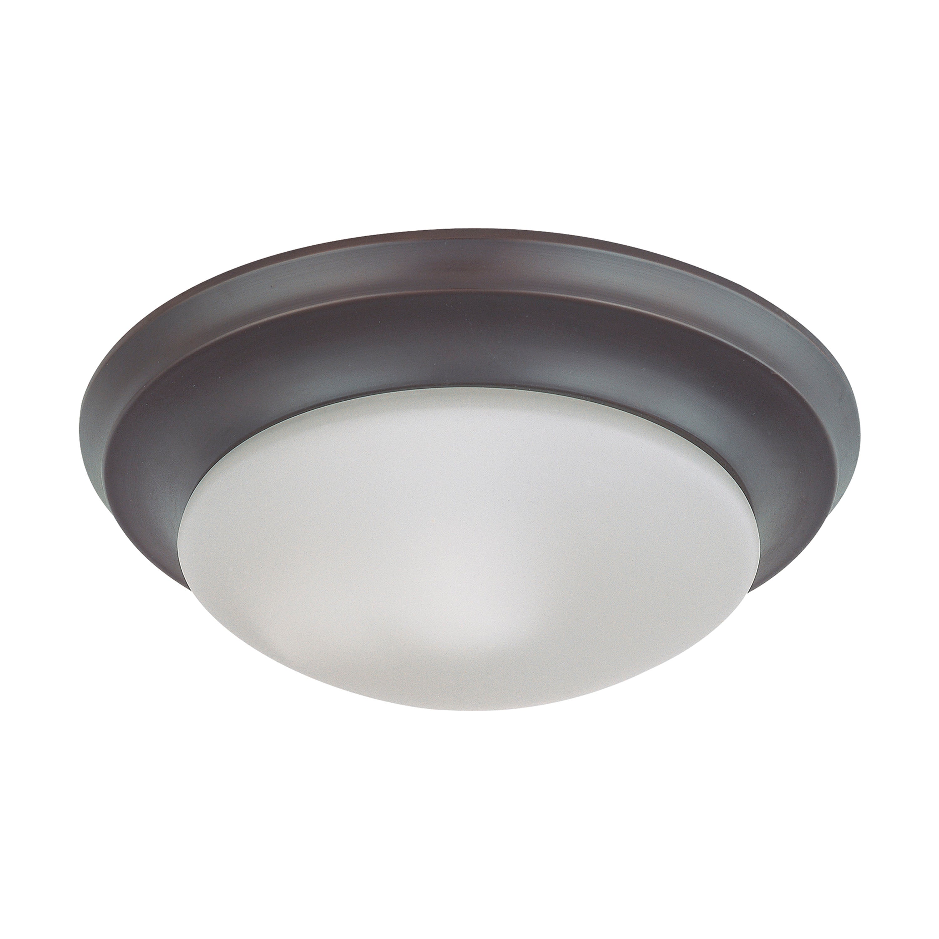 Satco's 1 light, 12 inch twist and lock flush mount features a deep rich mahogany bronze finish, accented by frosted white glass. Illuminate living rooms, foyers, or any room in the home that could use extra lighting with this easy to install flush mount fixture. Stylish and elegant, impress your guests with this sophisticated flush mount fixture.