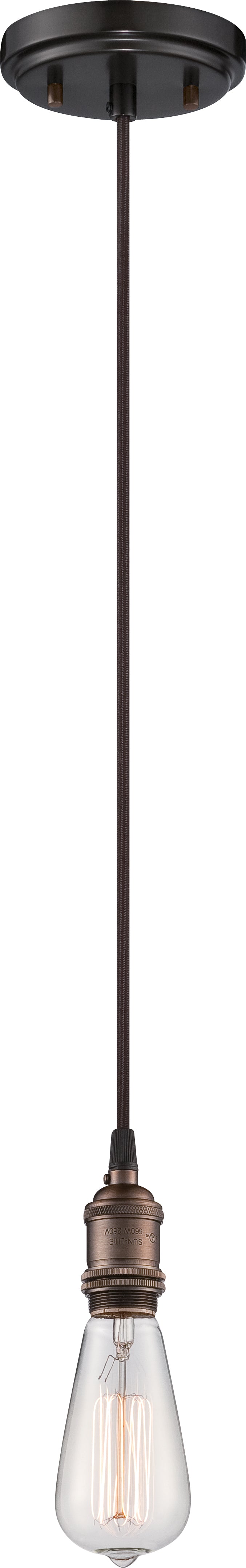 Nuvo's Vintage 1 light hanging pendant is an elegant lighting solution for inside the home. Illuminate dining rooms, living rooms, hallways, and foyers, with this rustic bronze pendant. A single ST19 bulb hangs off this sophisticated pendant. Contemporary and elegant, the Vintage pendant fixture adds style to any home decor.