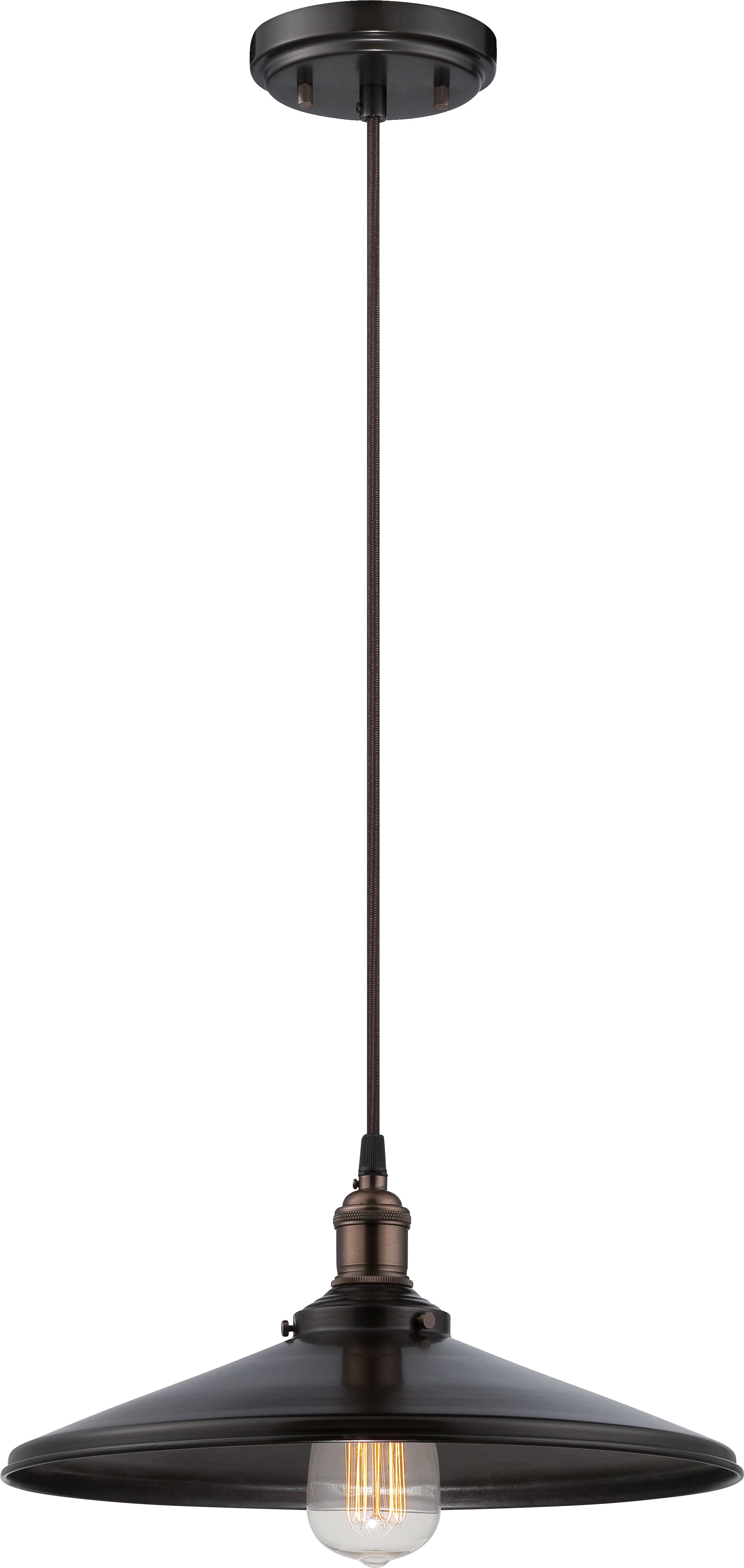Nuvo's Vintage 1 light hanging pendant is an elegant lighting solution for inside the home. Illuminate dining rooms, living rooms, hallways, and foyers, with this rustic bronze pendant. A single ST19 bulb is featured, backed by a rustic bronze shade. Contemporary and elegant, the Vintage pendant adds style to any home decor.