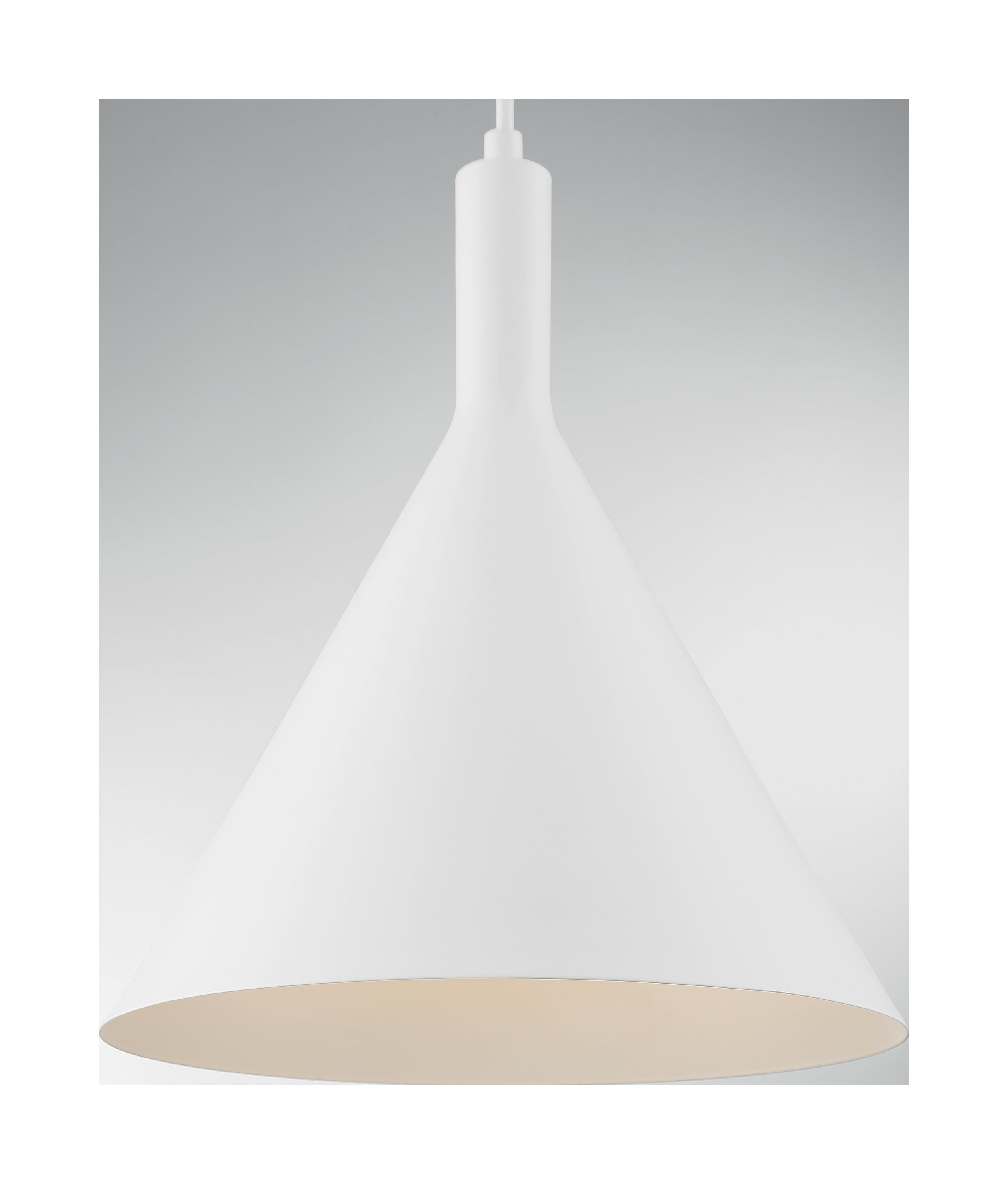 Lightcap is a modern design funnel-shaped one-light large pendant in Matte White with a reflective inner finish. The sleek shape and modern feel will fit in any contemporary or minimalist leaning home decor. Lightcap is ideal for many applications, including the kitchen, island counter, or bar. The Lightcap is 12 inches wide by 14.5 inches in height, which can be used as a single light source or can be used in multiples.