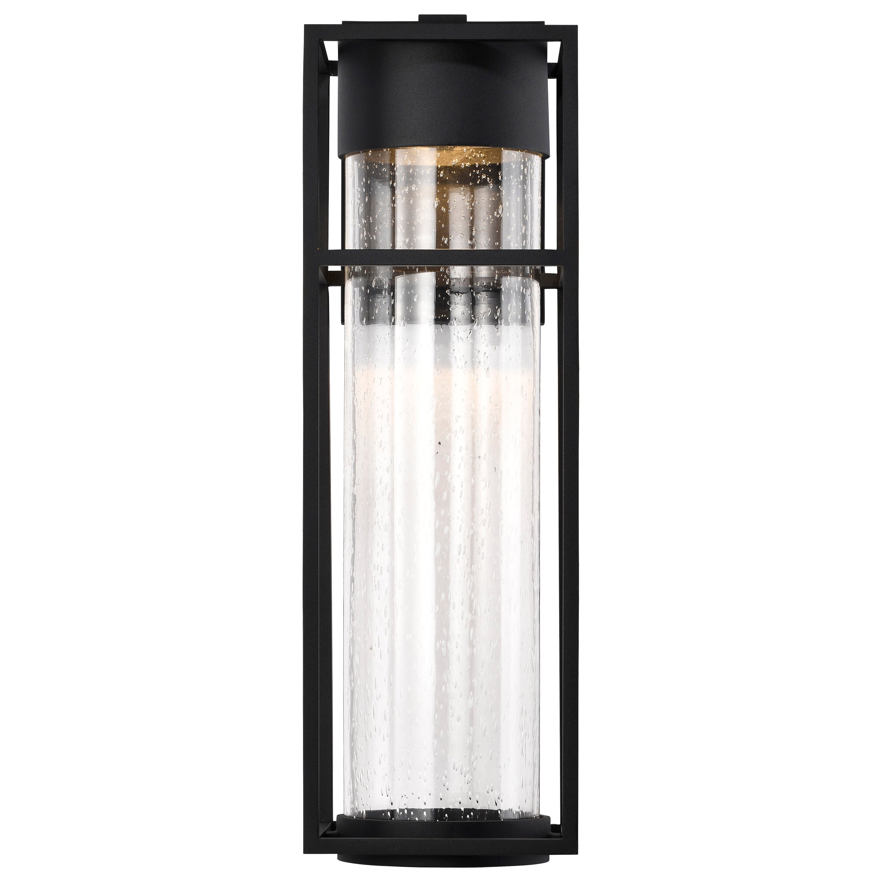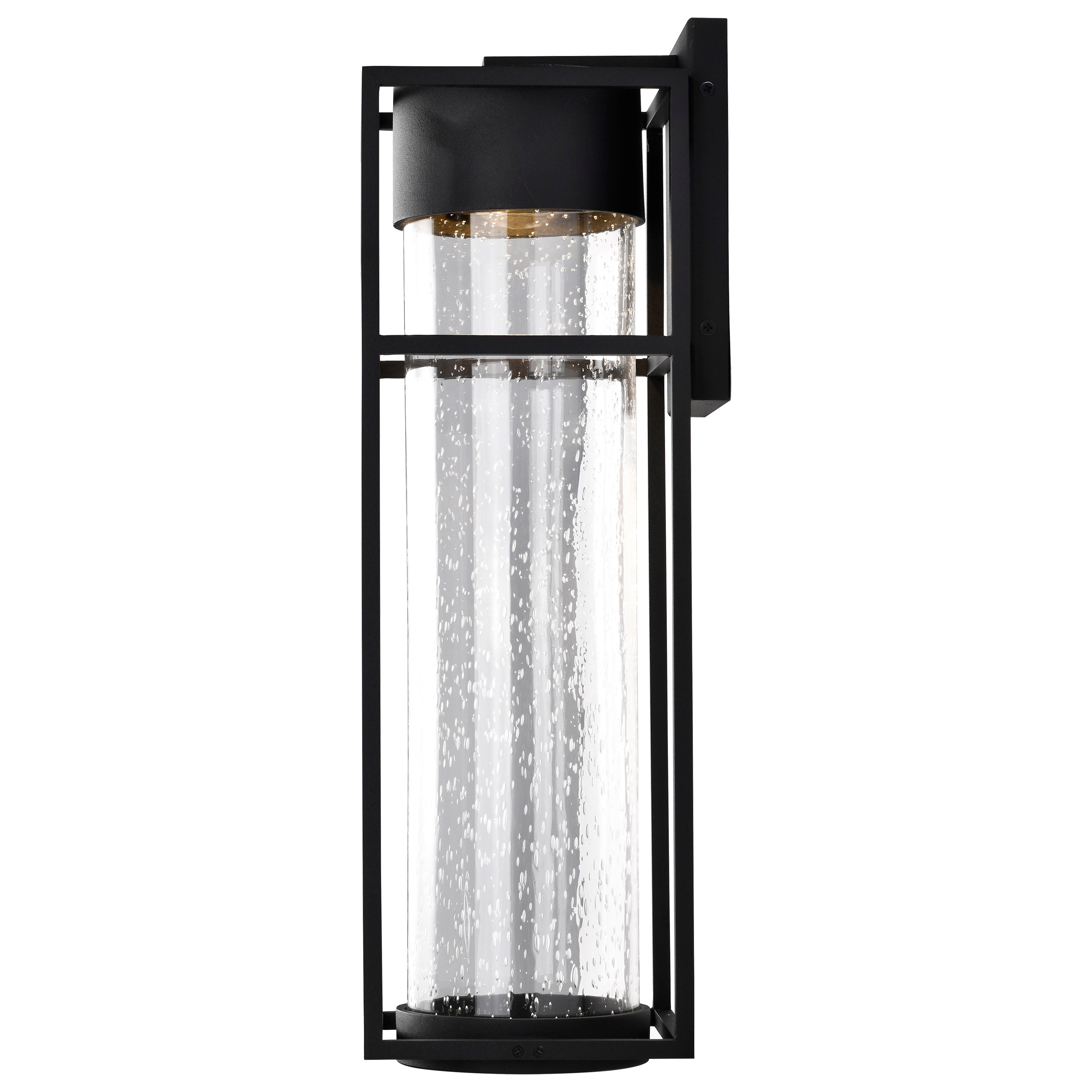 The Ledges LED large outdoor wall lantern blends a simplistic design with great style. The rectangular framework of the fixture is finished in matte black and highlights the cylindrical clear seeded glass housing the integrated LED module. Perfect for modern homes to add some dynamic and impactful lighting to their exteriors.