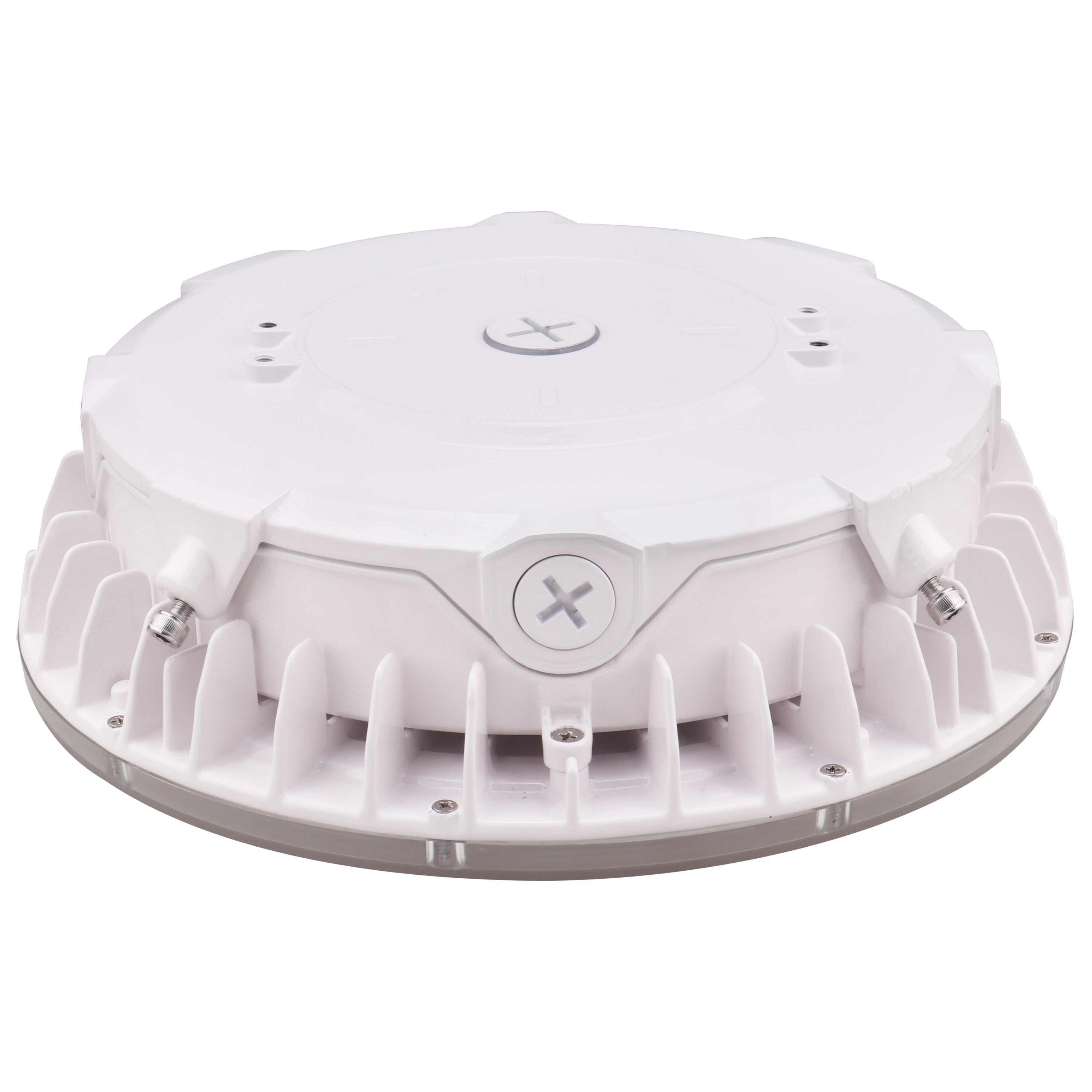SATCO NUVO's LED Round Canopy Lights are the perfect combination of durability and versatile functionality. With ColorQuick technology, easily select 3000K, 4000K, or 5000K CCT during installation. Also, these canopy lights feature an integrated sensor port, providing a convenient option to add a microwave or PIR motion sensor for even more energy savings and enhanced security. Crafted from premium die-cast aluminum, these fixtures are IK08 impact rated and designed to withstand the toughest environments. Whether brightening up a parking garage, illuminating a loading dock, or adding extra security to your outdoor space, these canopy fixtures are a versatile lighting solution.