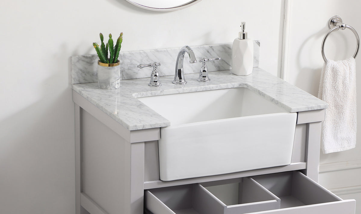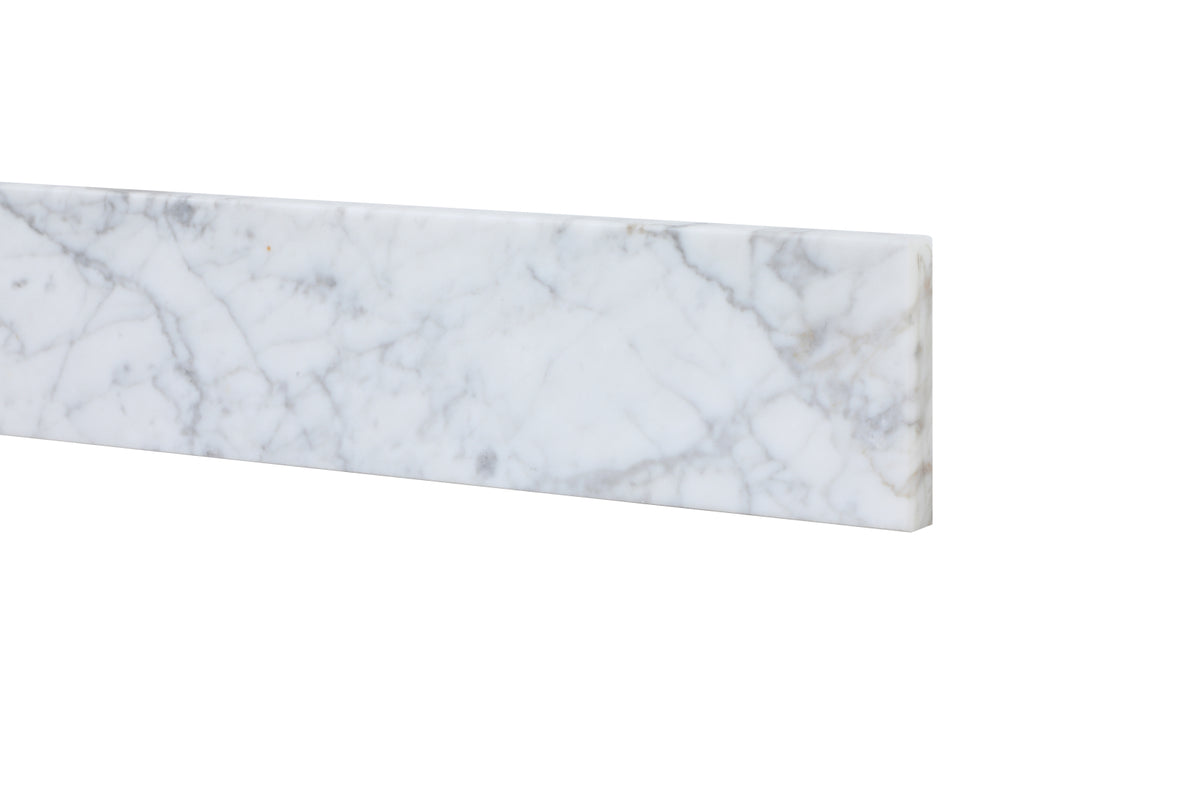 30 inch backsplash in carrara white designed to protect your bathroom walls from splashes and stains.