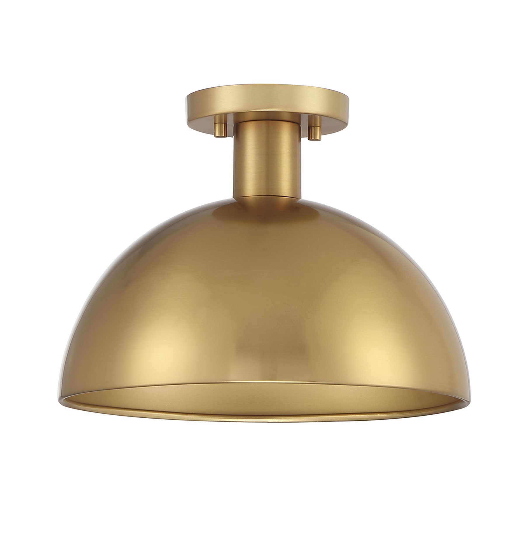 This 1-light ceiling light showcases a curving vintage-inspired shade that is finished in a stylish natural brass. 9" height, 12" width. Uses standard size bulb, max 60 watts. LED bulb compatible.