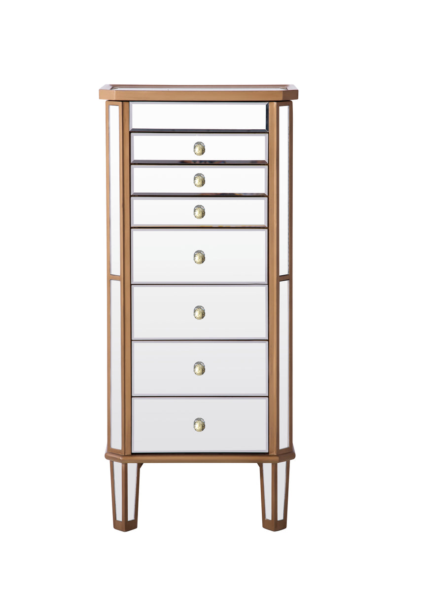7 Drawer Jewelry Armoire 18 in. x 12 in. x 41 in. in Gold Clear