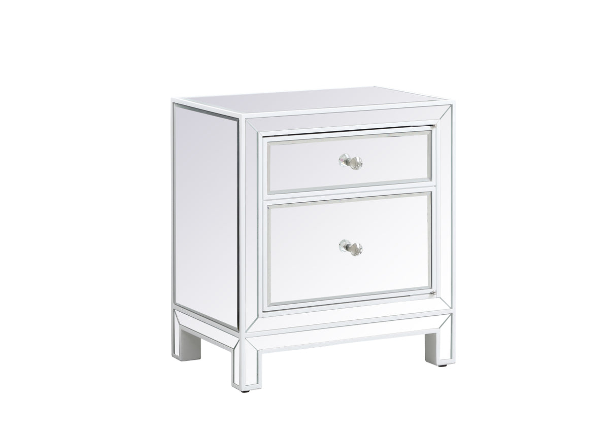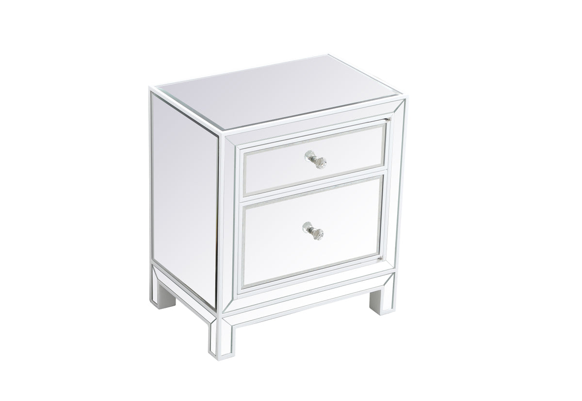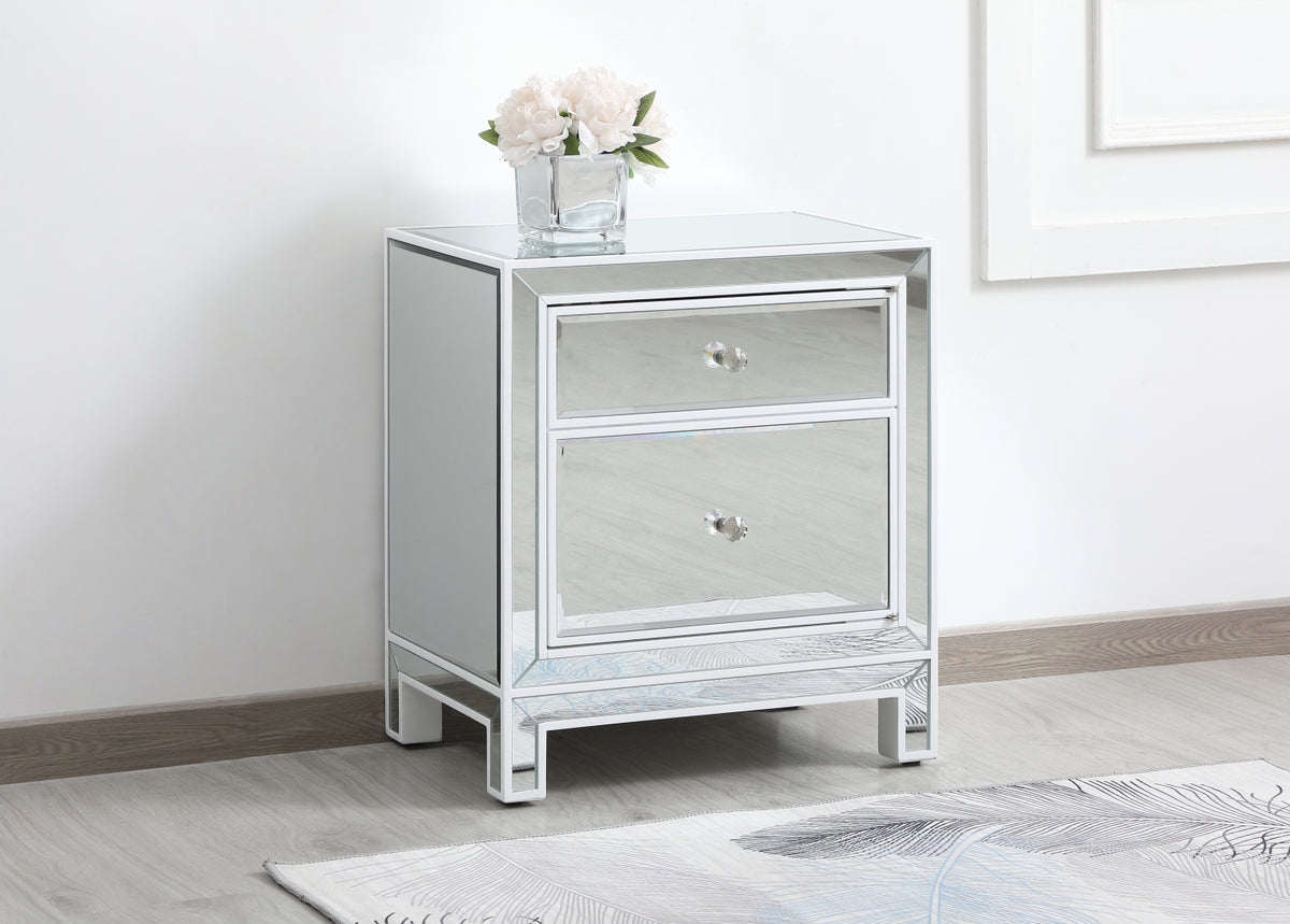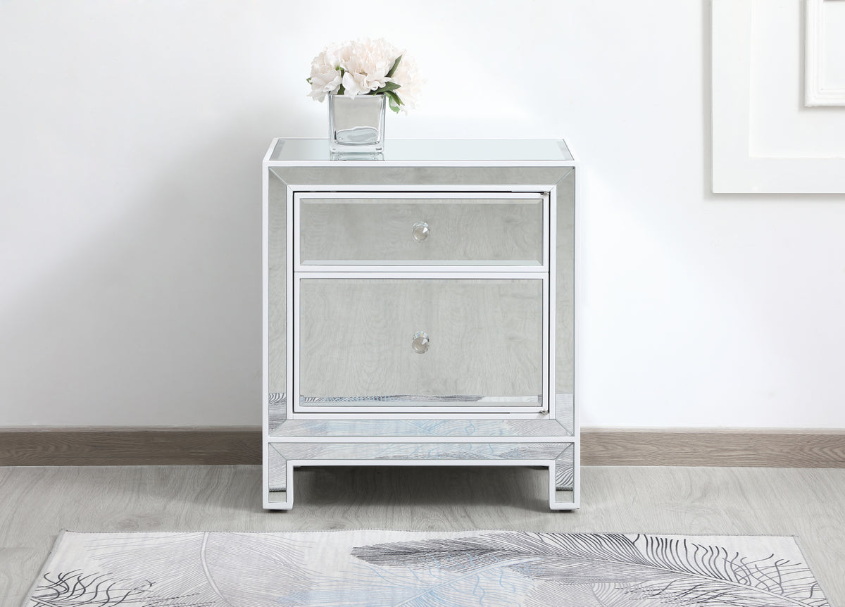With its sleek lines and contemporary reflective appeal, this cabinet brings glam to any room. It provide ample storage space with strong shelving, jewel like crystal knobs, top quality mirror surfaces, and distinctive mitered corners.