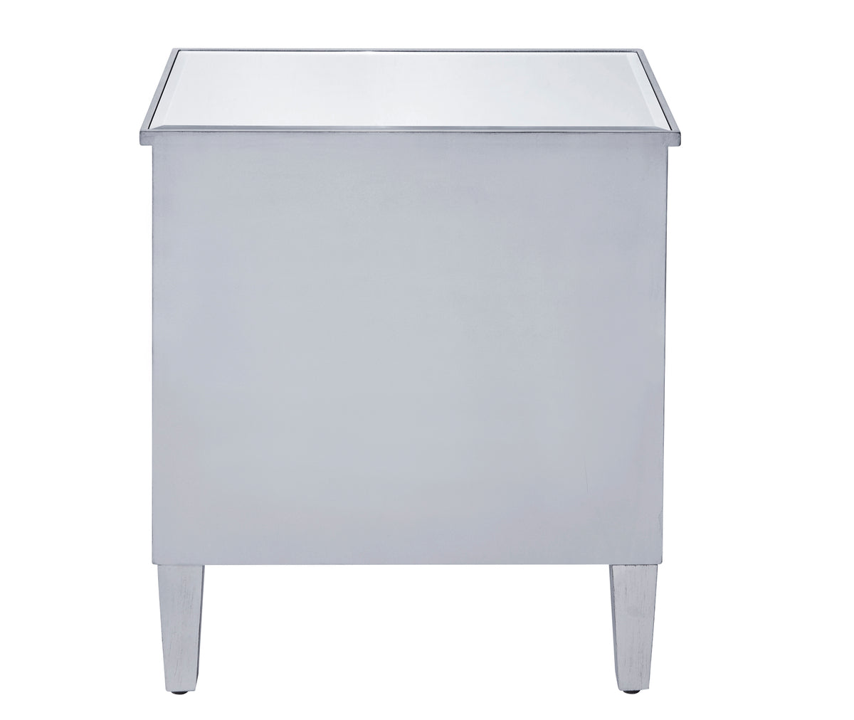 A perfect balance of contemporary elegance and practical utility, this chic two door mirror cabinet will enhance any room in your home. Featuring a hand paintedSilver finish, top quality mirror panels, jewel like crystal door knobs, and gracefully tapered legs, it will provide you with stylish storage space you often need. FEATURES: *Reflexion collection *1 storage shelf inside *crystal door knobs *Hand appliedSilver finish *Beveled mirror panel *Solid wood trim and legs *Inside lining painted in silver PRODUCT DETAILS: Measurement L24xW16xH26” *No assembly required *Material in kiln-dried solid wood and engineered wood * 1 year limited warranty.