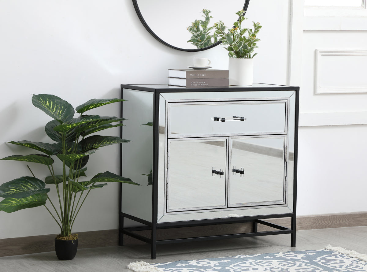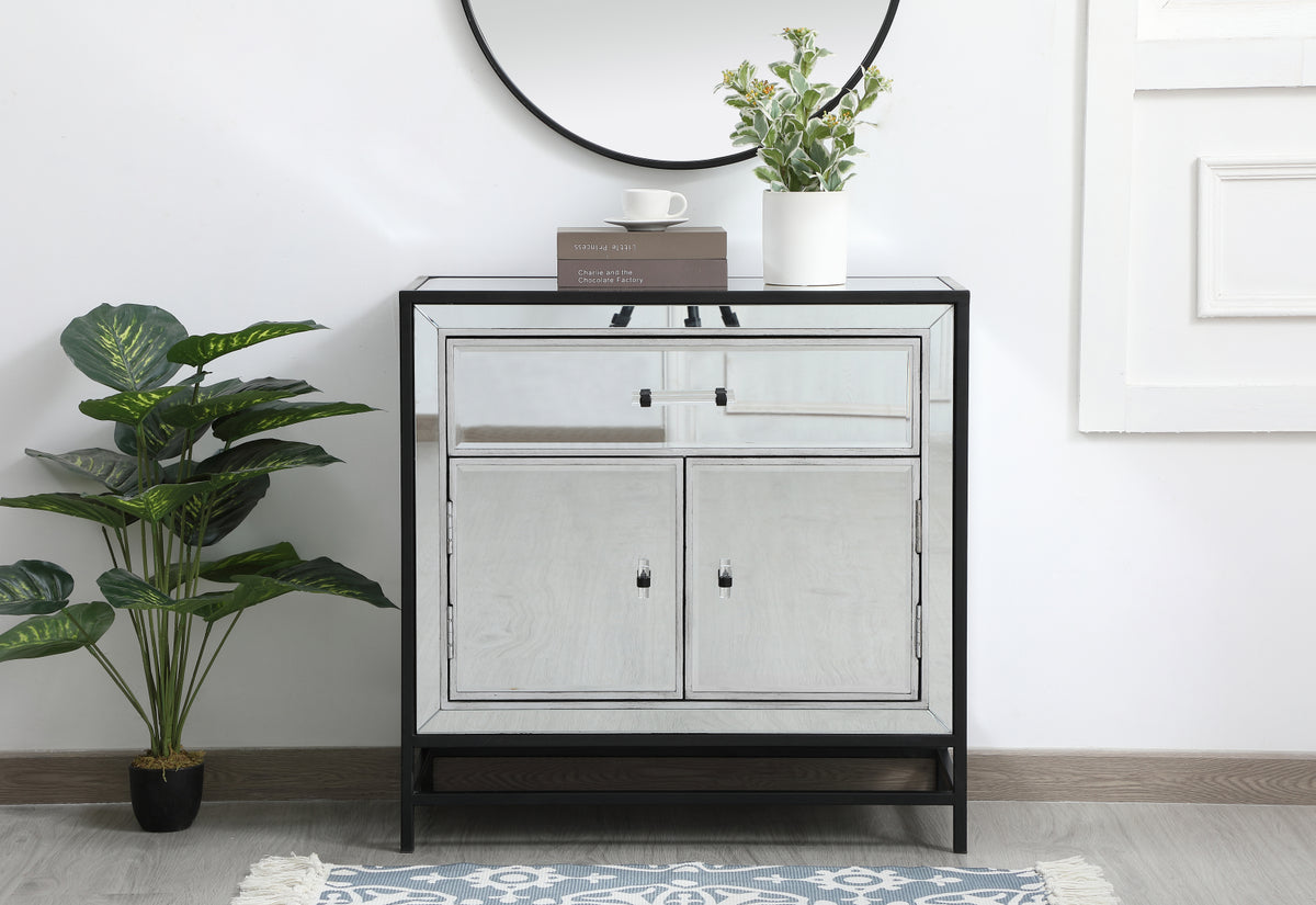 Bring plenty of storage space and modern style to your living room with this mirrored cabinet. This was made to withstand everyday use. Deep drawers to hold up to 66 pounds and opens quietly. This versatile cabinet blends in easily with any décor and easy to maintain. Ships fully assembled and ready to use. With anti-tip straps included for added security, this modern addition will complete your room.