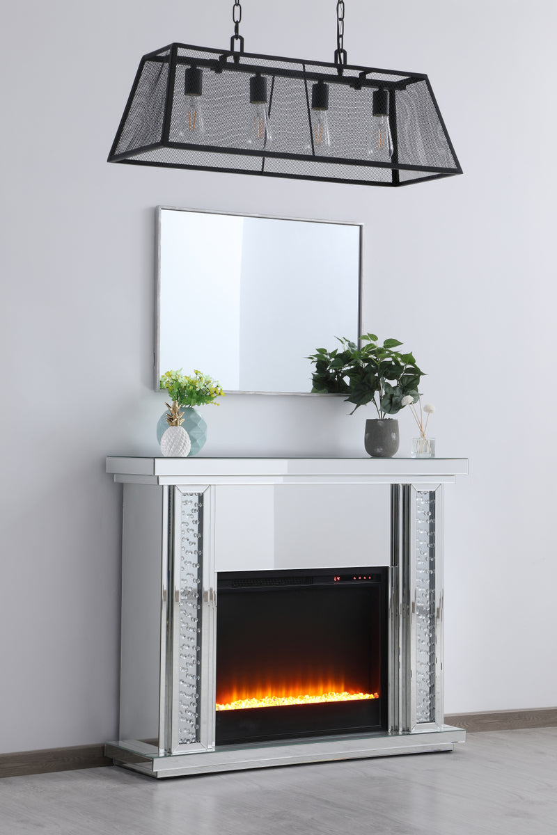 47.5 in. Crystal mirrored mantle with crystal insert fireplace