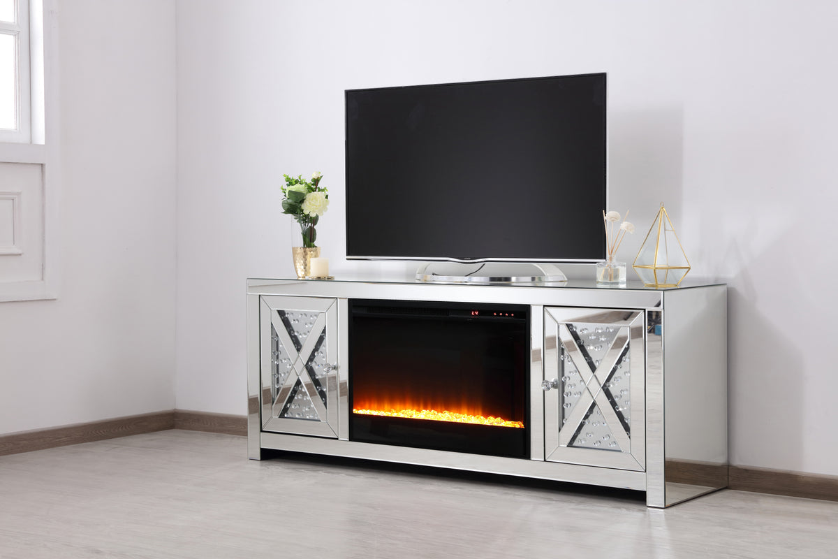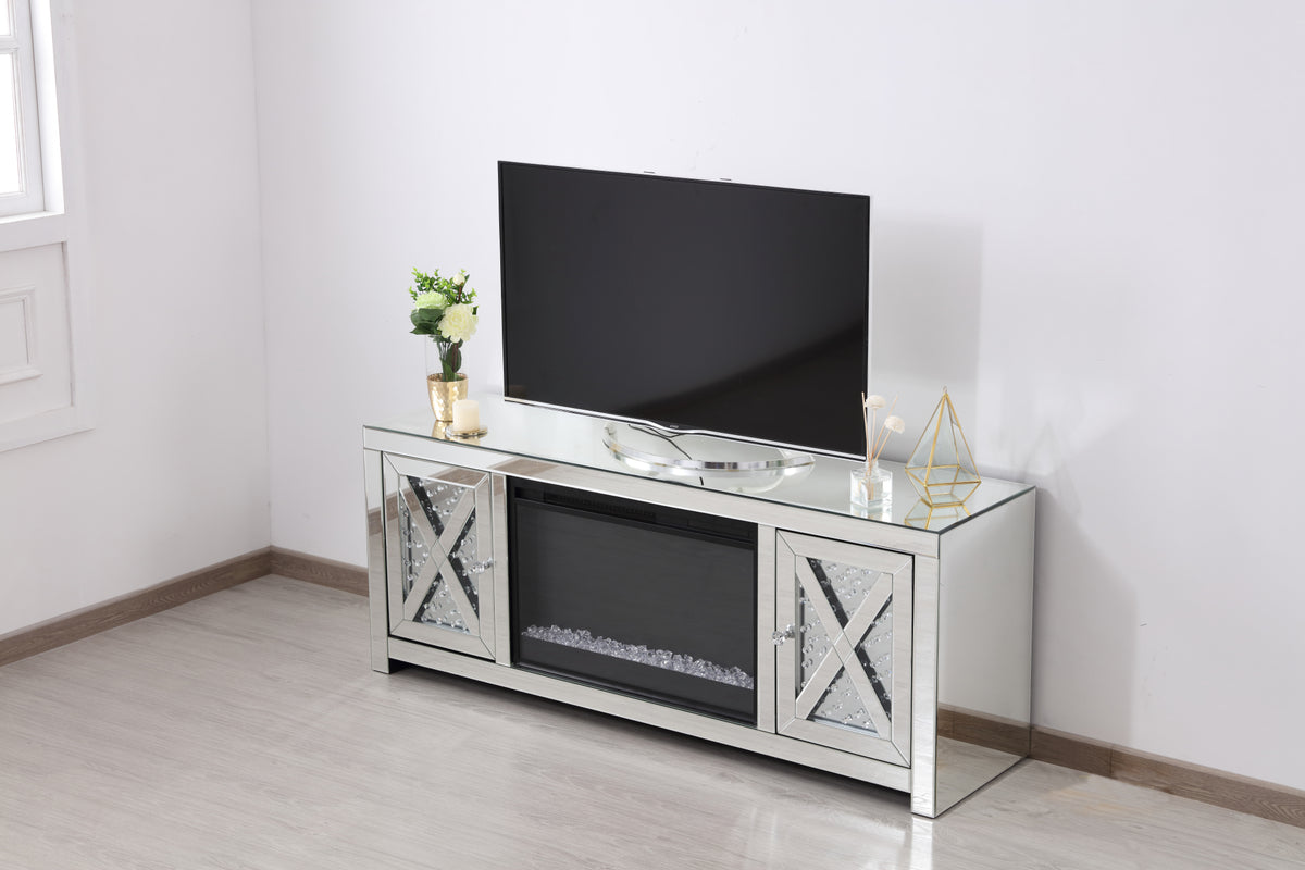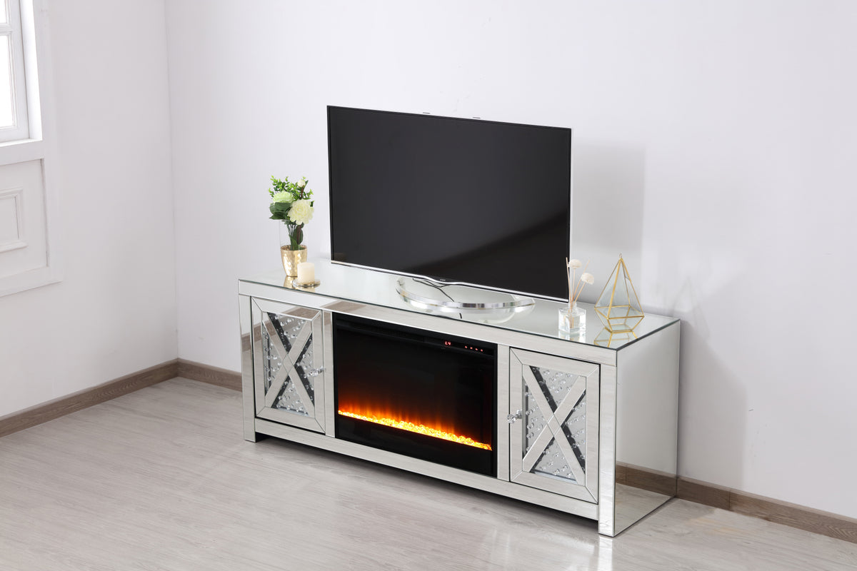 59 in.crystal mirrored TV stand with crystal insert fireplace