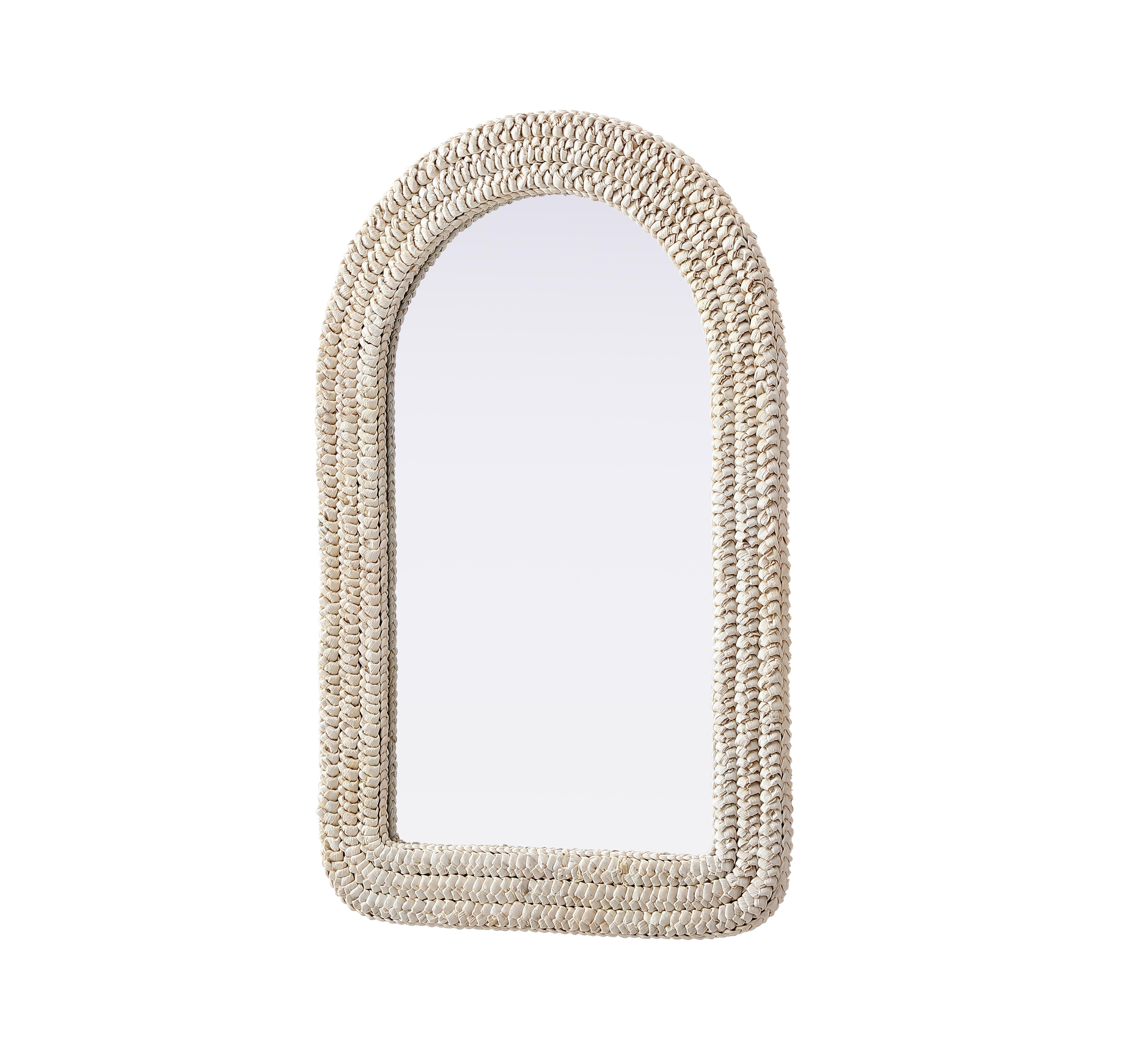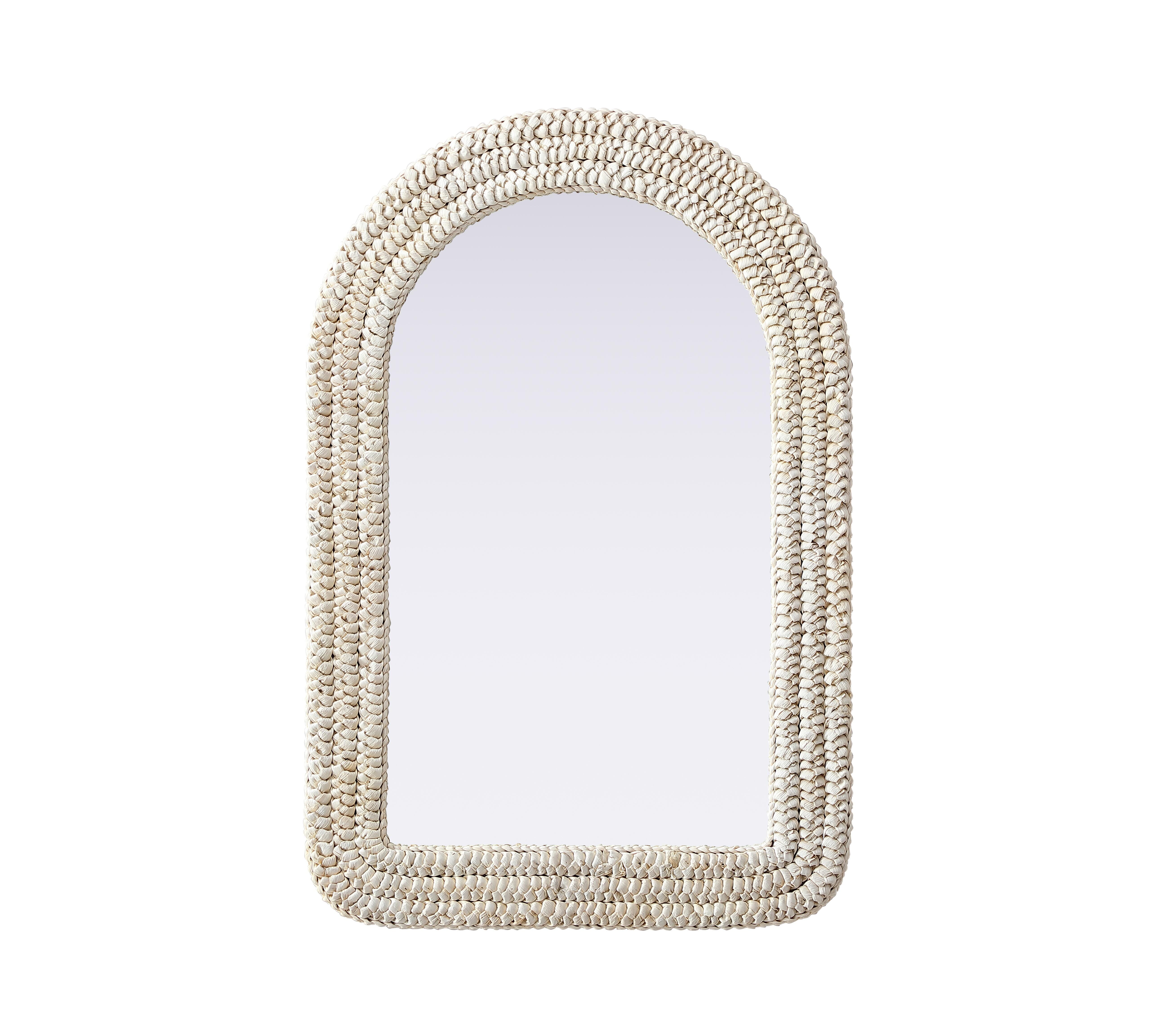 Transform your space with this stunning wall mirror that blends natural charm with functional design. Crafted from MDF, cornhusk, and high-quality mirror, the textured woven frame brings warmth and character to your decor. Whether you're decorating a hallway, living room, or bedroom, this mirror comes in a variety of shapes—including rectangle, round, oval, and arch—along with multiple size options to perfectly suit your needs. Designed for versatility, the mirror features two inset metal hangers, allowing you to mount it vertically with ease. Its reflective surface not only adds a touch of brightness but also creates the illusion of a larger room, enhancing your space. With durable materials and ready-to-hang hardware, this mirror is as practical as it is stylish, making it a must-have piece for any home.