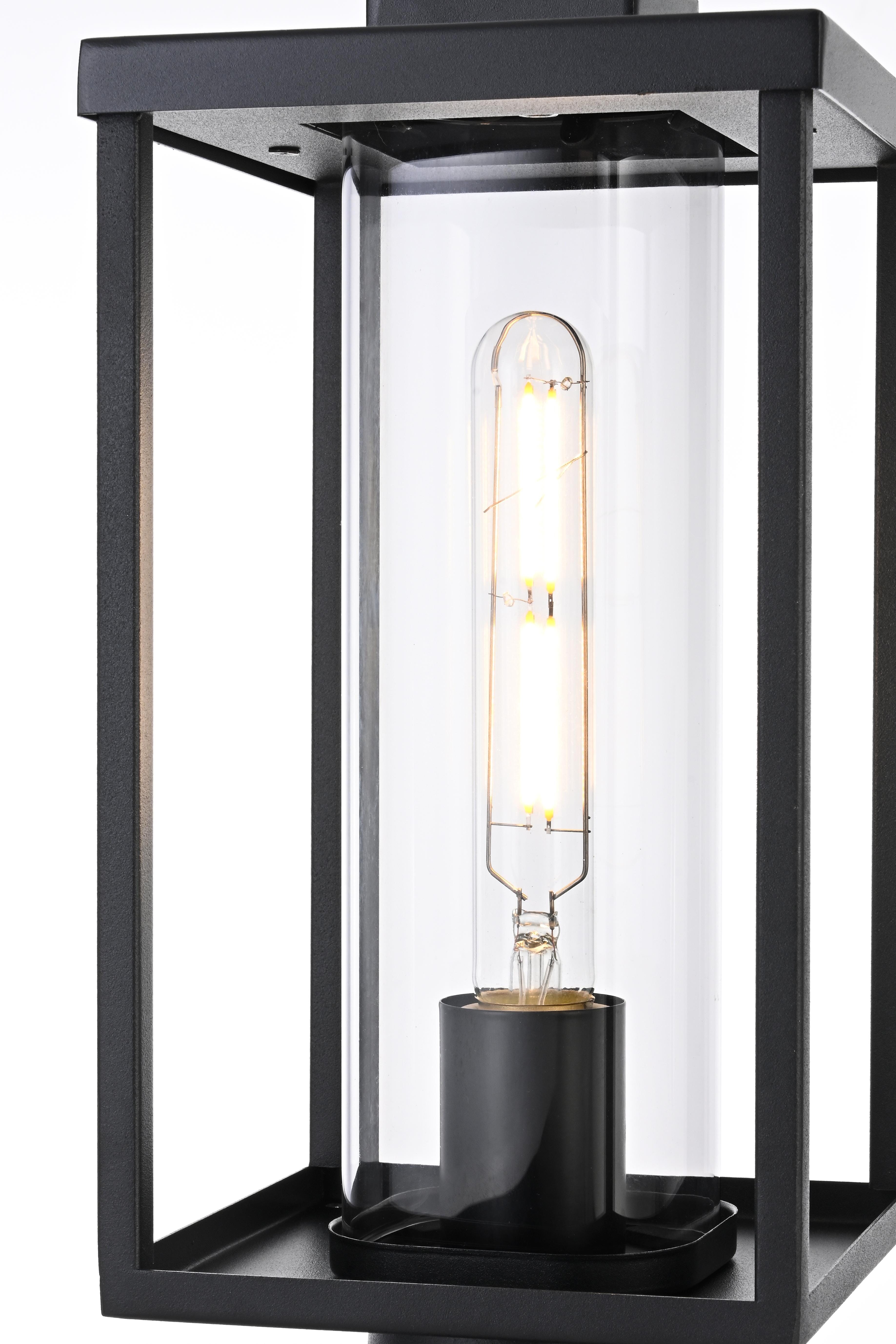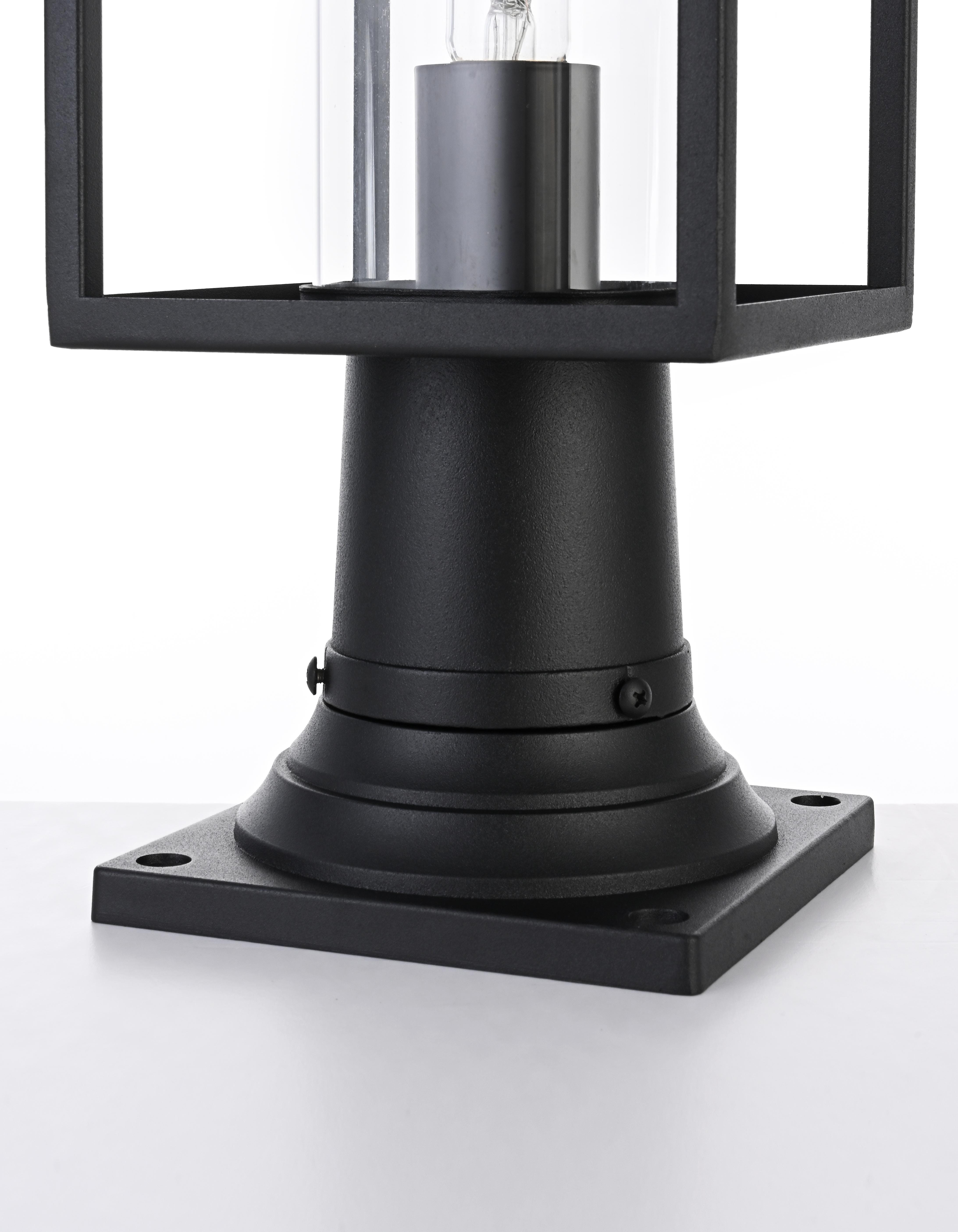 Introduce timeless charm and functionality to your outdoor space with this modern post light. Crafted from durable iron and paired with a sleek glass cylinder, this post light brings clean lines and a minimalist vibe to your exterior decor. It is thoughtfully designed to create a warm, ambient glow, ideal for front porches, patios, and entryways. The sturdy iron frame gives it a robust look, while the clear glass ensures the perfect display of your chosen bulb, allowing for a soft, inviting illumination. Built with practicality in mind, this fixture is as stylish as it is practical, perfect for complementing a range of exterior styles.