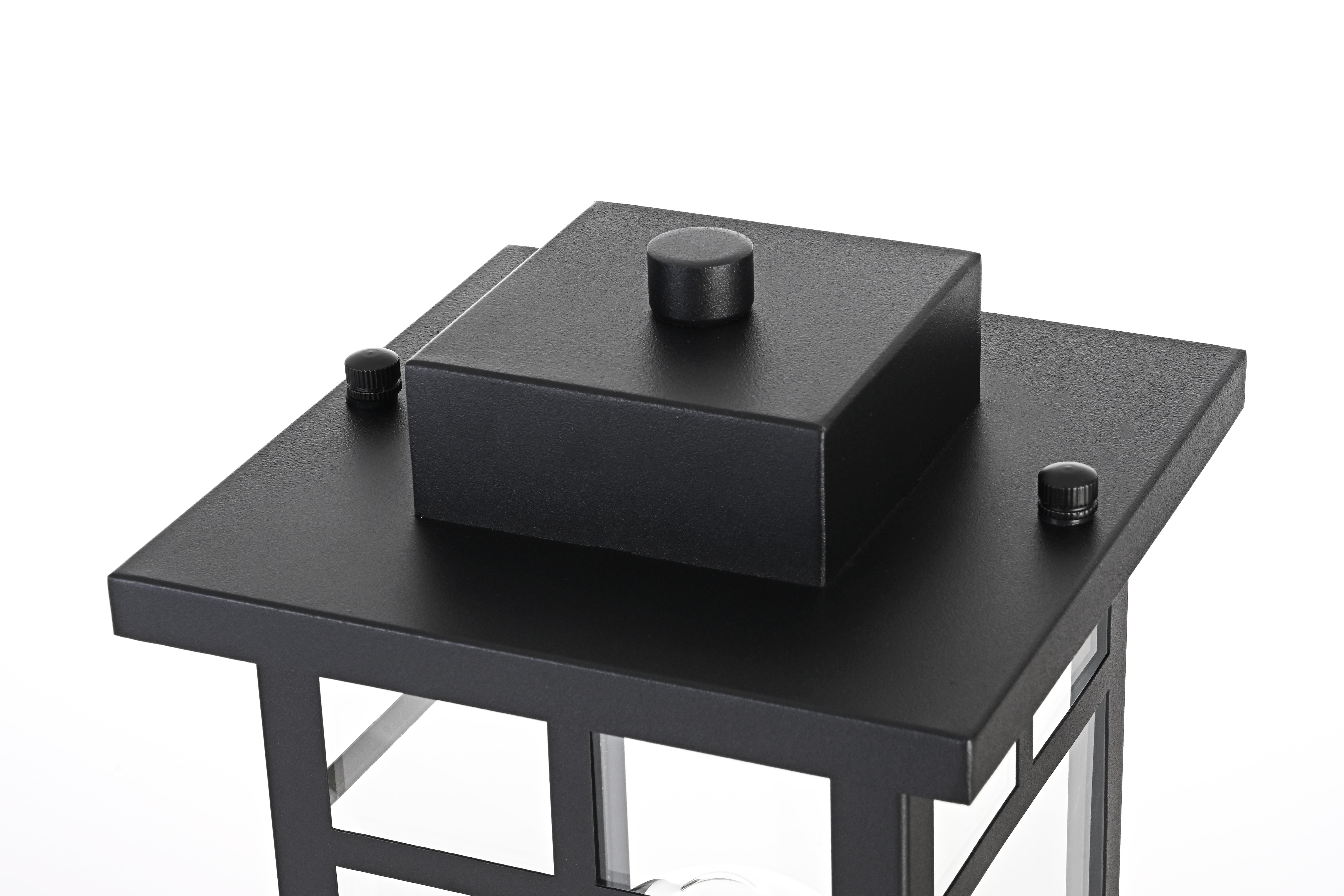 Enhance the curb appeal of your home with this sophisticated outdoor post light. Featuring a sturdy iron frame in a rich matte black finish, this fixture offers a perfect combination of modern aesthetics and traditional charm. Clear glass panels allow for a bright, ambient glow, beautifully showcasing any decorative bulb you choose. The timeless lantern design complements a wide range of architectural styles while ensuring lasting durability against the elements. Whether it's your front porch, back patio, or any outdoor area, this post light effortlessly blends style with functionality.
