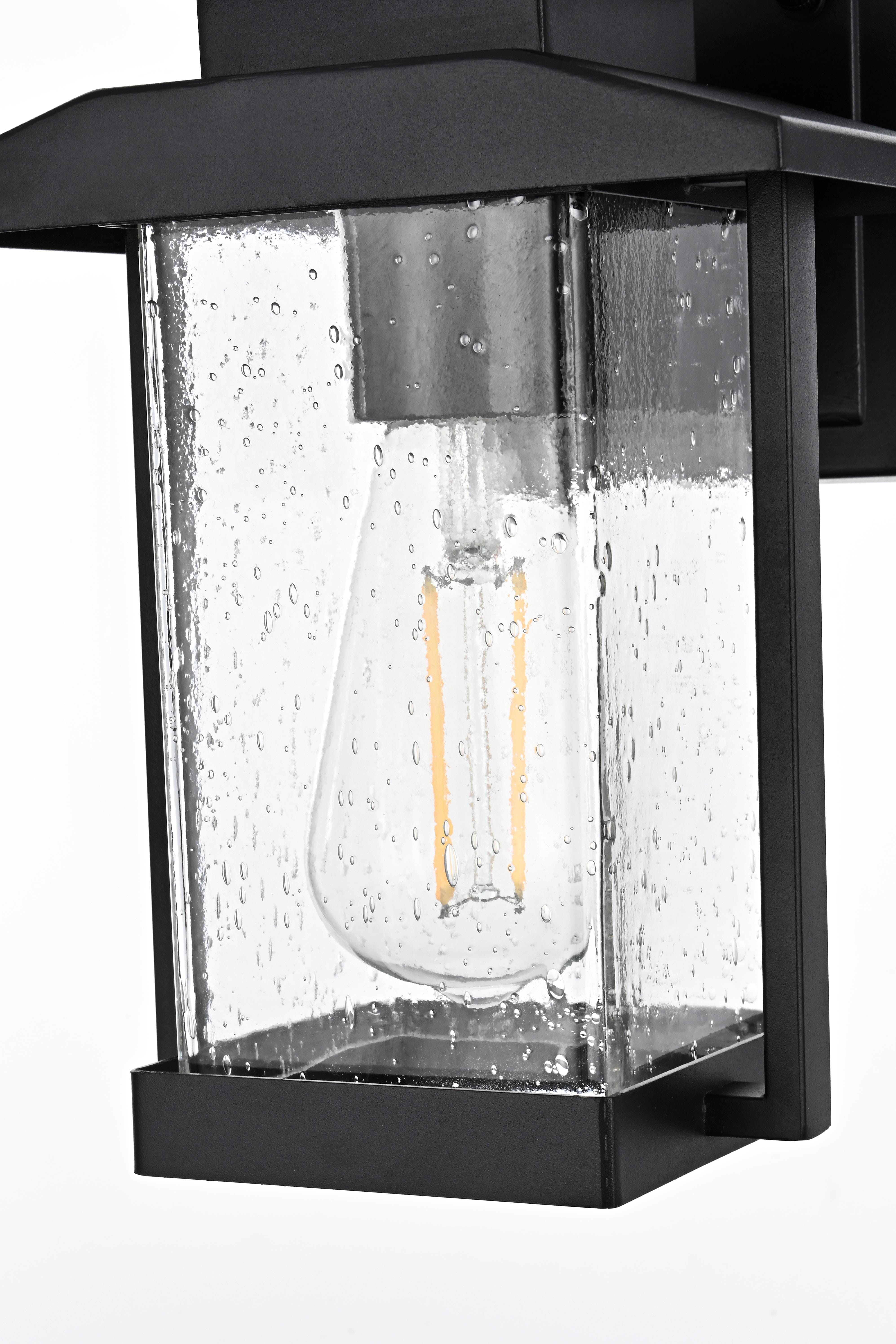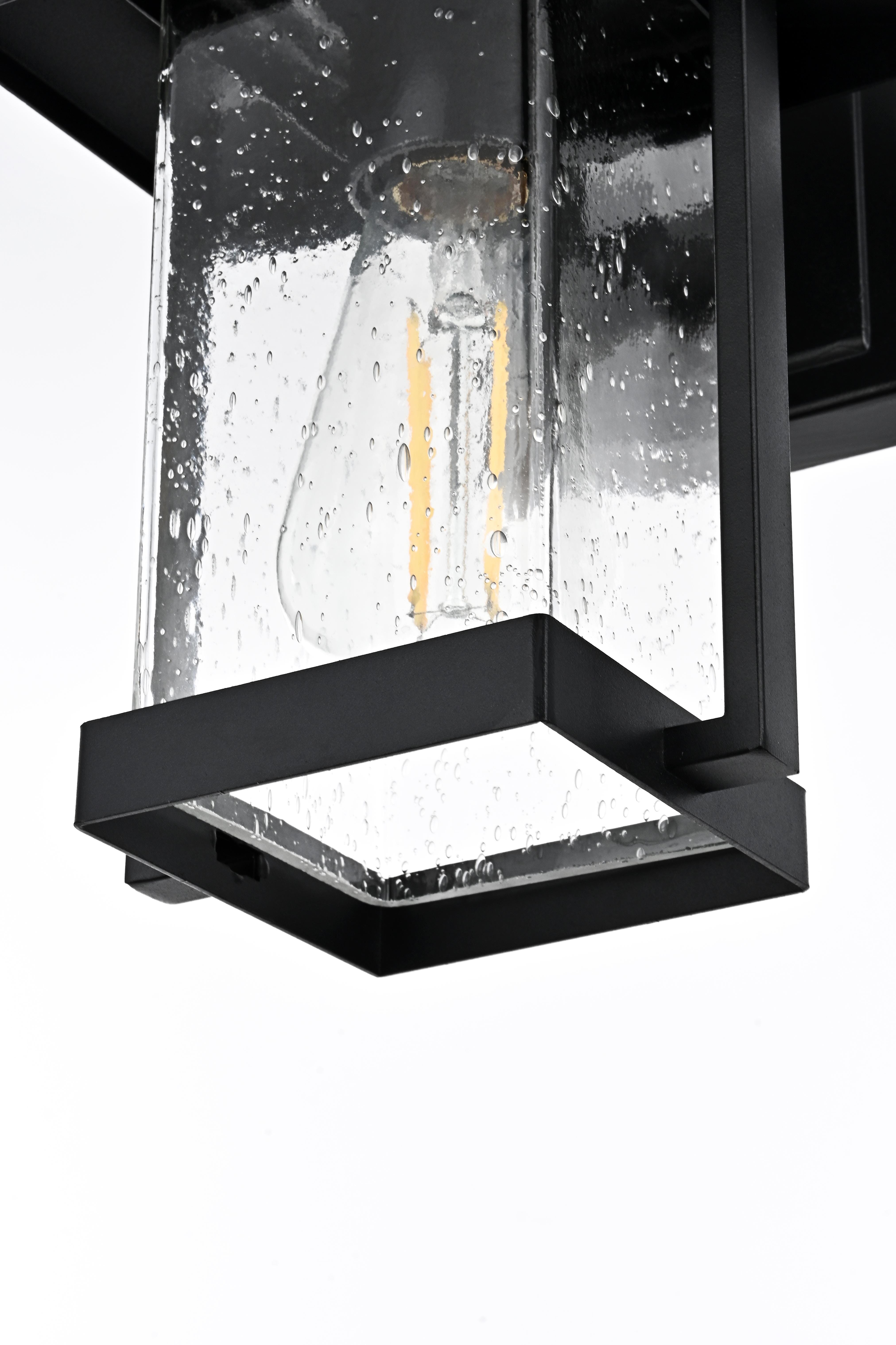 This outdoor wall sconce is an impressive blend of modern style and functionality, ideal for enhancing the ambiance of your home's exterior. Crafted from high-quality iron and complemented by textured glass, this sconce exudes a sense of timeless beauty that feels both sturdy and refined. Its crisp geometric lines and clean black finish give it a contemporary touch, while the seeded glass panel subtly diffuses the light, adding a charming glow that instantly elevates the atmosphere. Perfect for porches, patios, or garden paths, this sconce is designed to create a welcoming, radiant entrance for guests. With its straightforward design, it offers an effortlessly stylish way to brighten your outdoor space without overwhelming your existing decor.