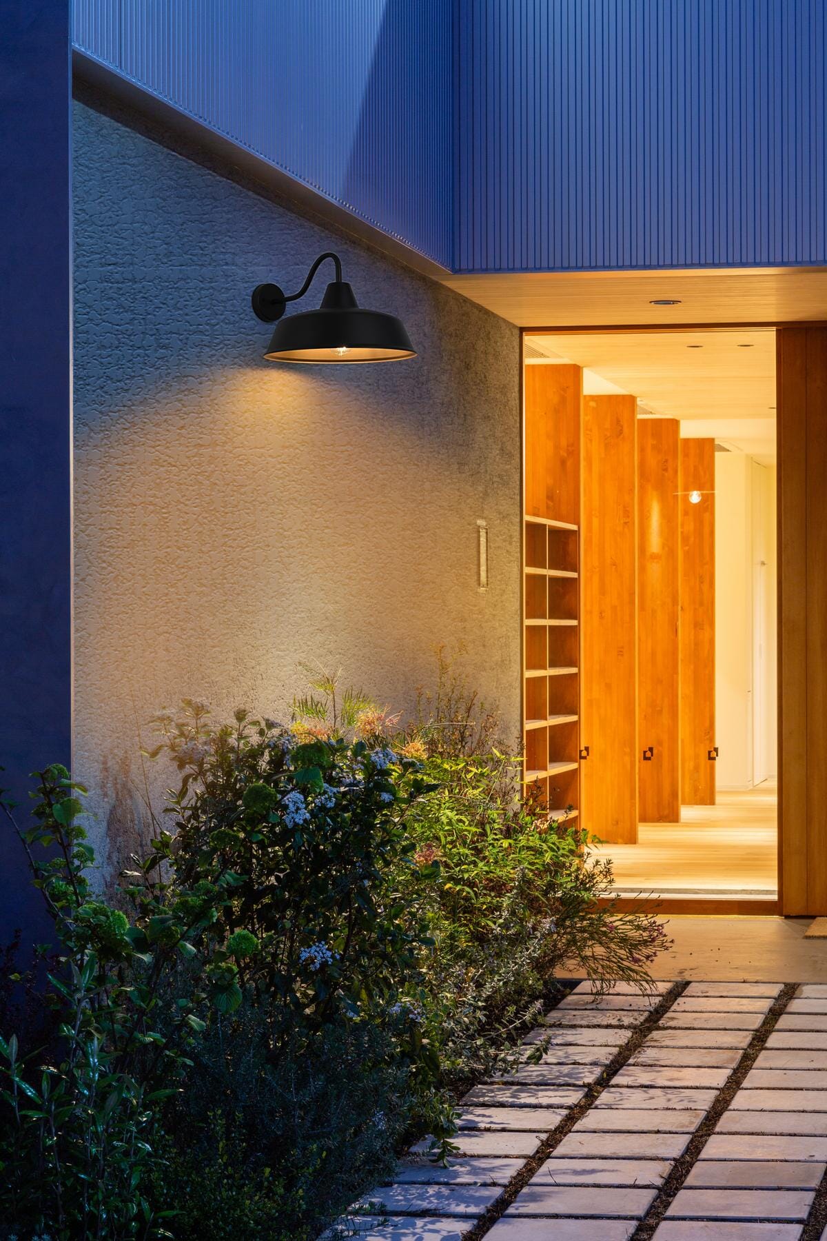 This outdoor wall light brings a timeless barn-style aesthetic to exterior spaces, featuring a flared metal shade, curved gooseneck arm, and contrasting black-and-gold finish. The wide metal shade directs light downward, while the gold interior enhances brightness with a warm, reflective glow. Built from sturdy iron, this fixture is ETL Wet Rated for durability in porches, patios, garages, and farmhouse exteriors. The compact 5-inch round backplate provides a secure mount, and the dimmable functionality allows for adjustable brightness when paired with a compatible dimmer. Designed for a medium-base E26 bulb (not included), this fixture blends practical lighting with industrial character, making it a strong and stylish addition to any outdoor space. Built with marine-grade, corrosion-resistant aluminum, this sconce withstands coastal conditions for long-lasting durability.