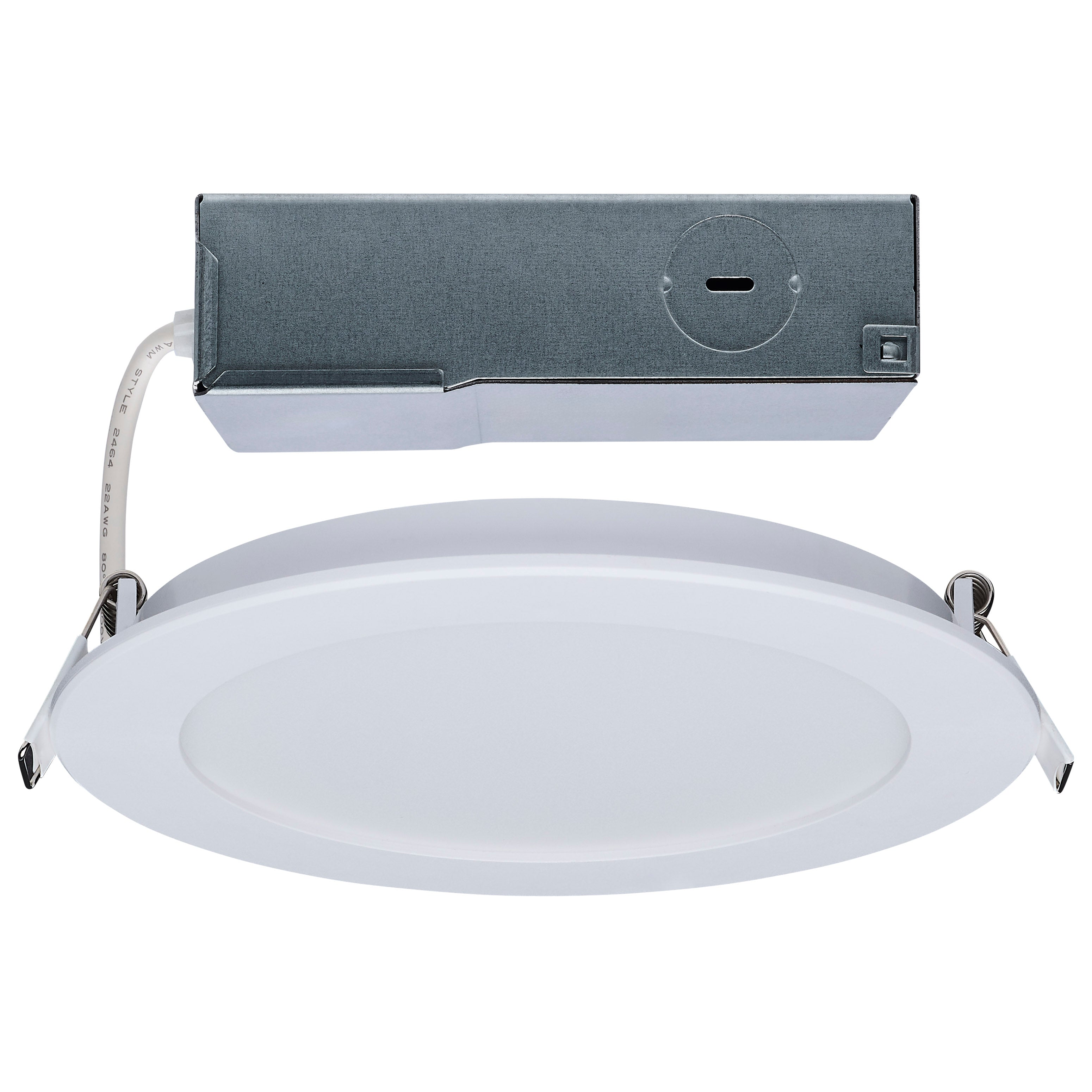 SATCO NUVO'S Performer Series LED Slimfit Downlights deliver versatile, high-performance lighting in a sleek, low-profile design. Available in 4-inch and 6-inch round sizes, these downlights feature a flat lens design, adjustable spring clips, and an innovative remote driver J-box for easy installation. The non-conductive dead front trim ensures safe operation in wet environments, making them ideal for showers, bathrooms, and other damp areas. They are also NEC compliant for closet installations, ensuring safe and reliable performance in smaller spaces. With IC and Airtight ratings, 5 CCT selectable color options, a 90 CRI for vibrant illumination, and a 50,000-hour lifespan backed by a 5-year warranty, these downlights provide safe, efficient, and adaptable lighting for any space.