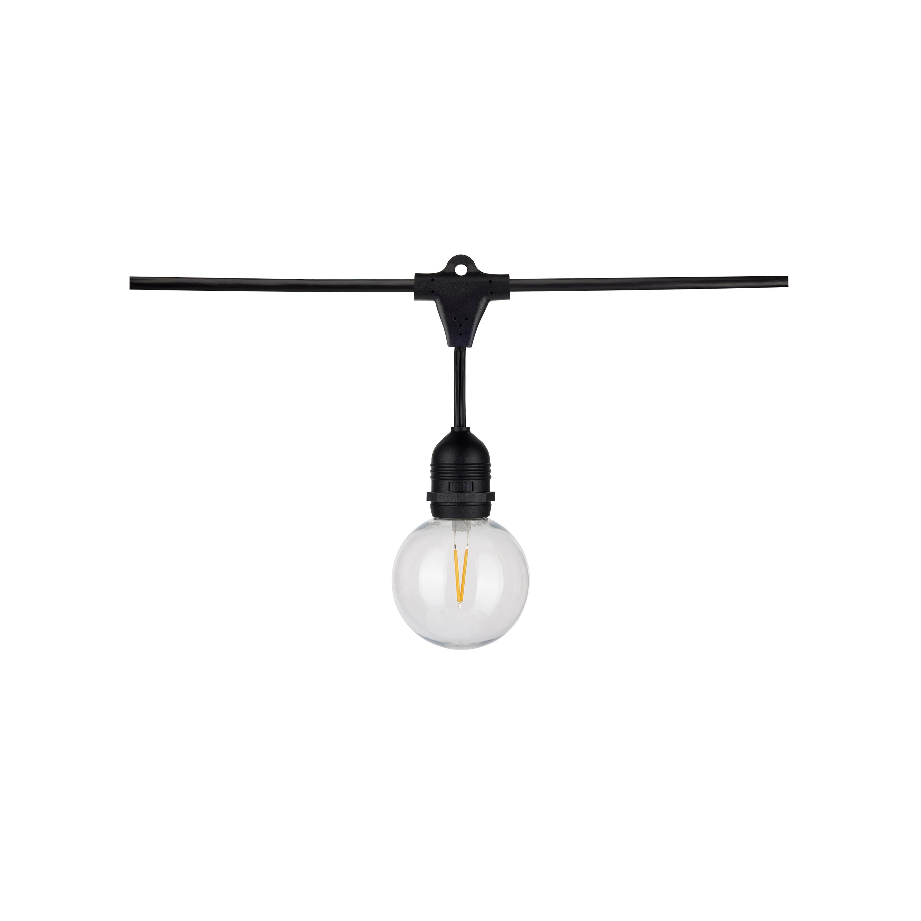 Create a classic look with Satco's new energy saving LED string lights. This 24 foot LED decorative string light will transform any space into a stylish evening experience. Each strand includes 12 energy efficient, bistro style globe LED light bulbs which deliver a perfect warm glow and old-world charm in a thoroughly modern design. Featuring a heavy duty, weatherproof cord with slots for easy bulb installation, these portable lights are versatile and can be used to illuminate any number of areas both inside or outside your home.