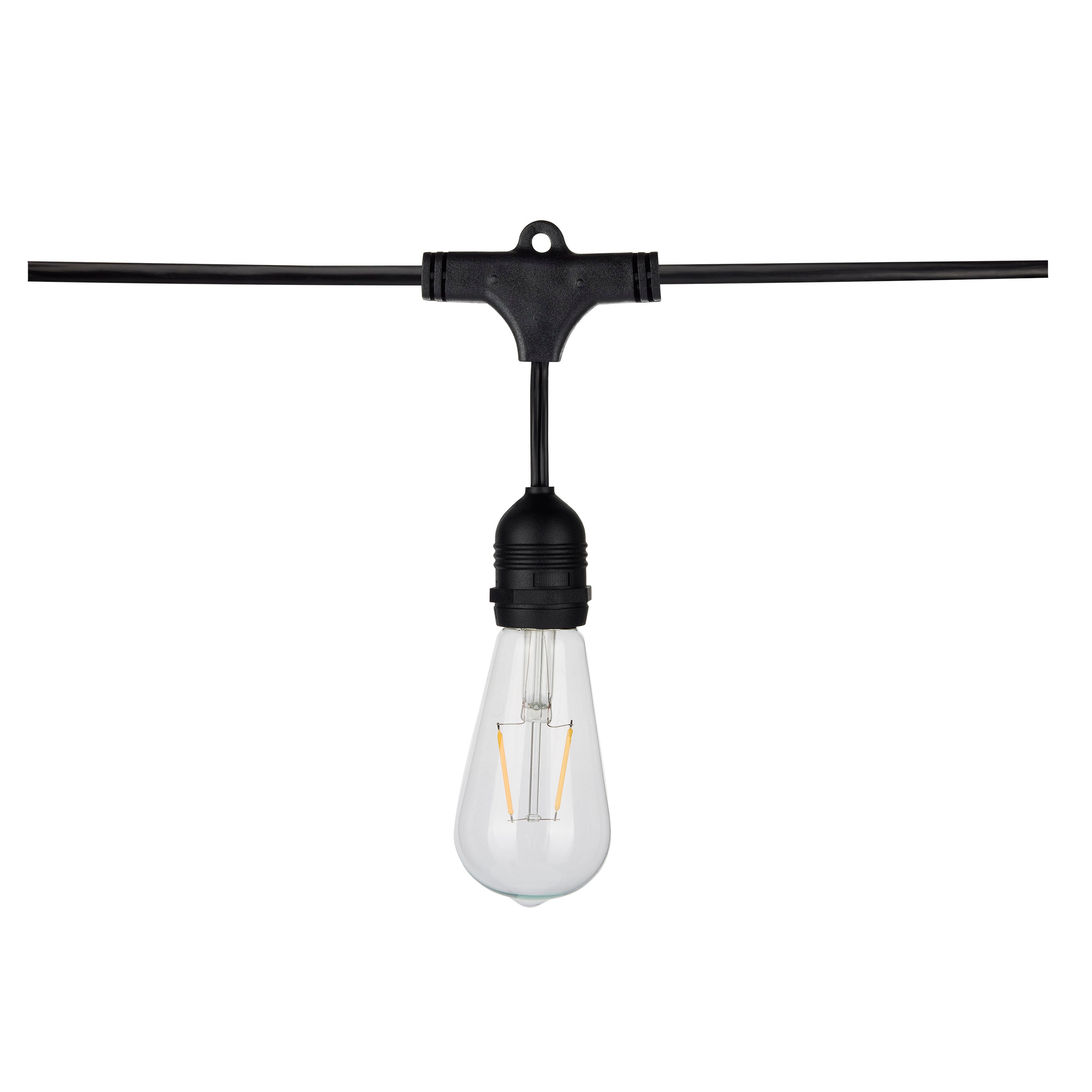 Create a classic look with Satco's new energy saving LED string lights. This 24 foot LED decorative string light will transform any space into a stylish evening experience. Each strand includes 12 energy efficient, vintage style ST19 LED light bulbs which deliver a perfect warm glow and old-world charm in a thoroughly modern design. Featuring a heavy duty, weatherproof cord with slots for easy bulb installation, these portable lights are versatile and can be used to illuminate any number of areas both inside or outside your home.