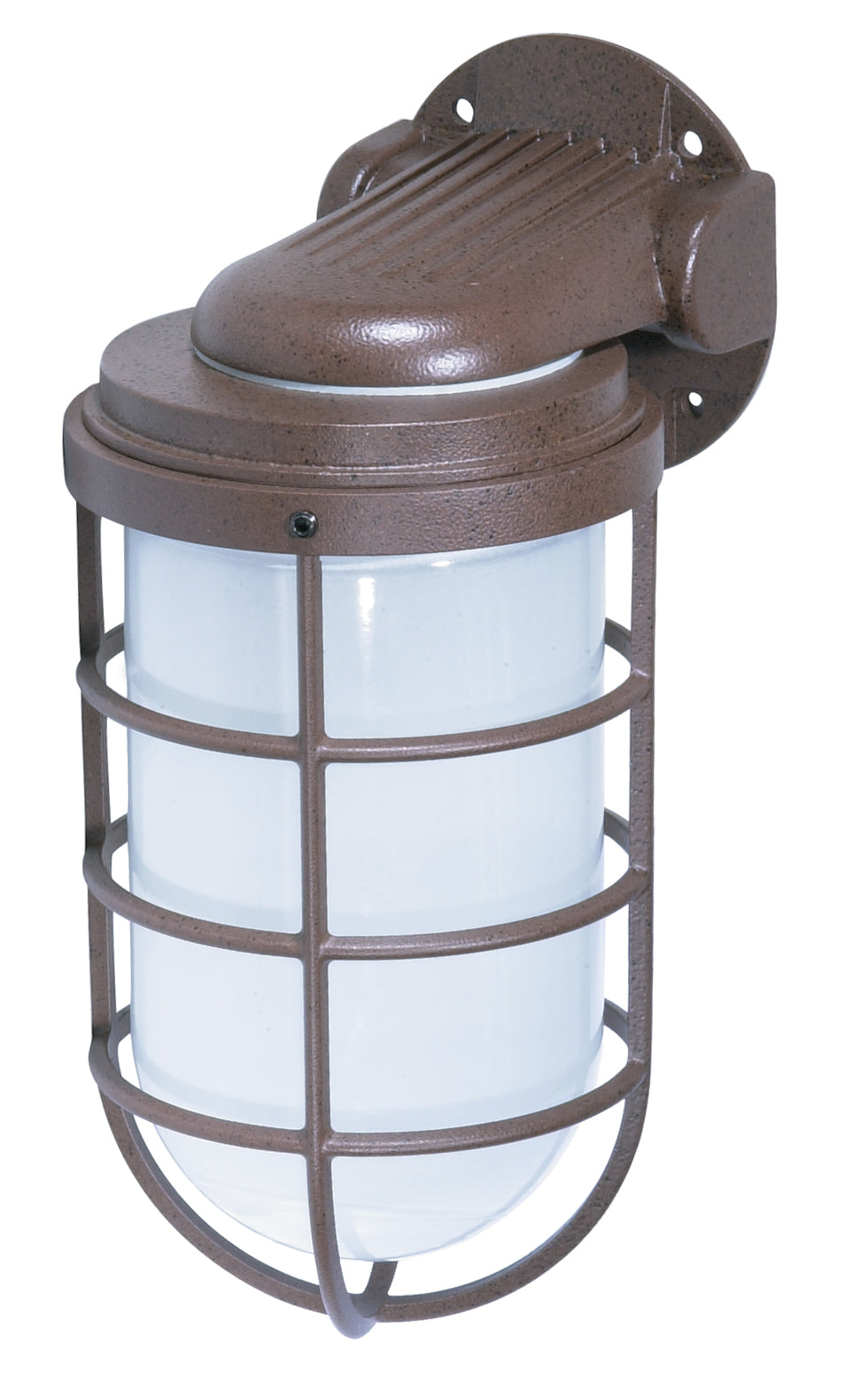 Nuvo's 1 light, 11 inch industrial style wall mount fixture is a practical exterior lighting solution. This vapor proof wall mount comes in an old bronze finish with frosted glass, and is perfect for illuminating parking lots, entrances, or anywhere exterior lighting is needed. A single A19 bulb is protected by the glass globe and aluminum cage of this wall mount that can be installed facing either up or down. Functional and versatile, this vapor proof wall mount is designed to withstand harsh weather conditions.