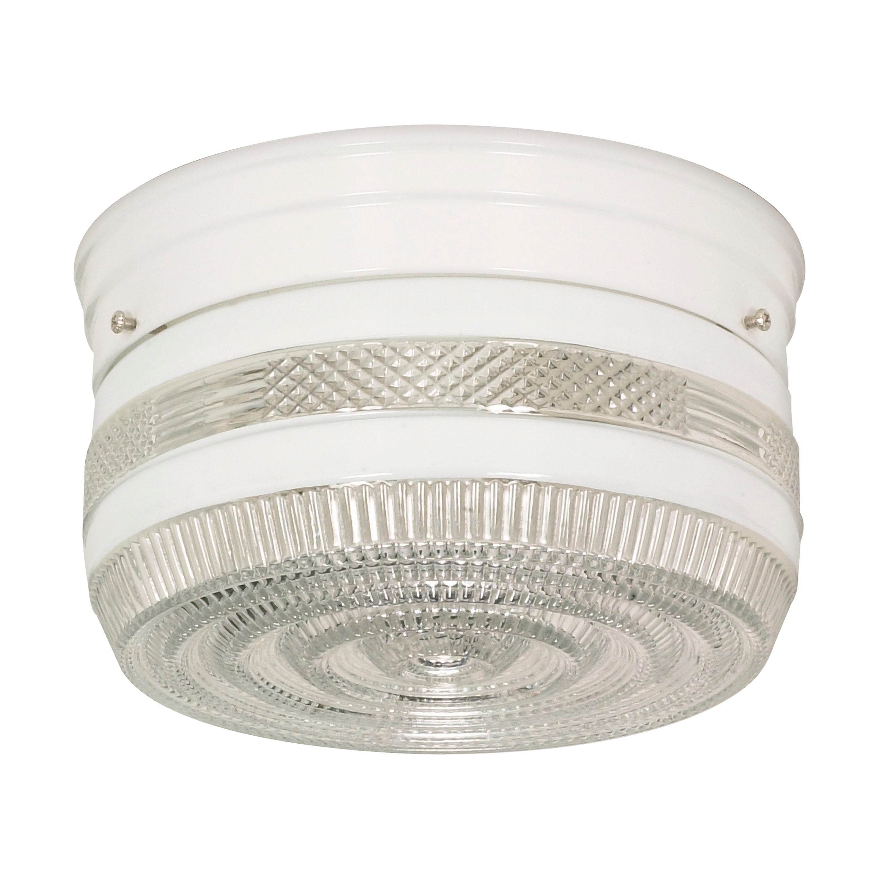 Nuvo's 2 light, 8 inch flush mount ceiling fixture is a sophisticated lighting solution for the home. Perfect for living rooms, dining rooms, hallways, and foyers, this white flush mount fixture features dual A19 bulbs behind a crystal and white drum. Traditional and elegant, this flush mount fixture adds style to any home decor.