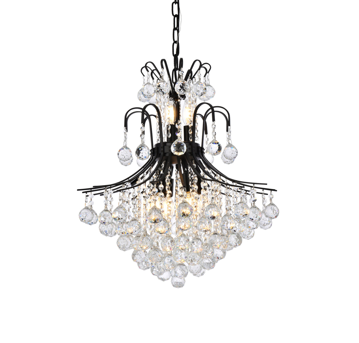 A treasure trove of glittering crystals, Toureg collection pendant lamps are generous with their sparkle. Stately curved steel arms and frame form an opulent flared shape available in black, chrome or gold finishes. Faceted clear crystal balls and crystal octagons offer a variety of options to choose from. Certain to be the center of attention in the dining room, living room, bedroom, or stairwell.